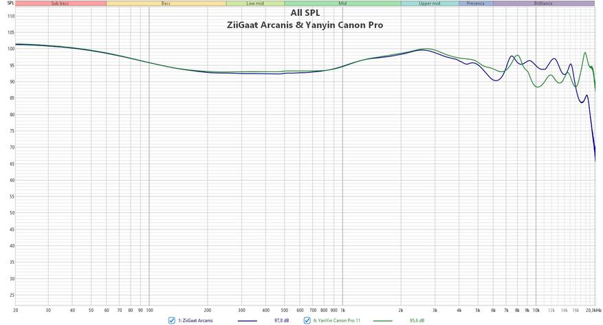 Наушники Arcanis — это долгожданное флагманское решение от компании ZiiGaat. Дороже у них, по-моему, ещё не было. Внутри стоит два изобарически расположенных 10 мм динамика и целых пять балансных арматур производства Knowles. Две из которых отвечают за нижнюю середину, две — за её верхнюю часть и одна 33518 — за самые верха. Звучат они, естественно, ну просто потрясающе и, как несложно догадаться, являются прямым конкурентом для Yanyin Canon Pro. Вот с ними их подробно и сравним.