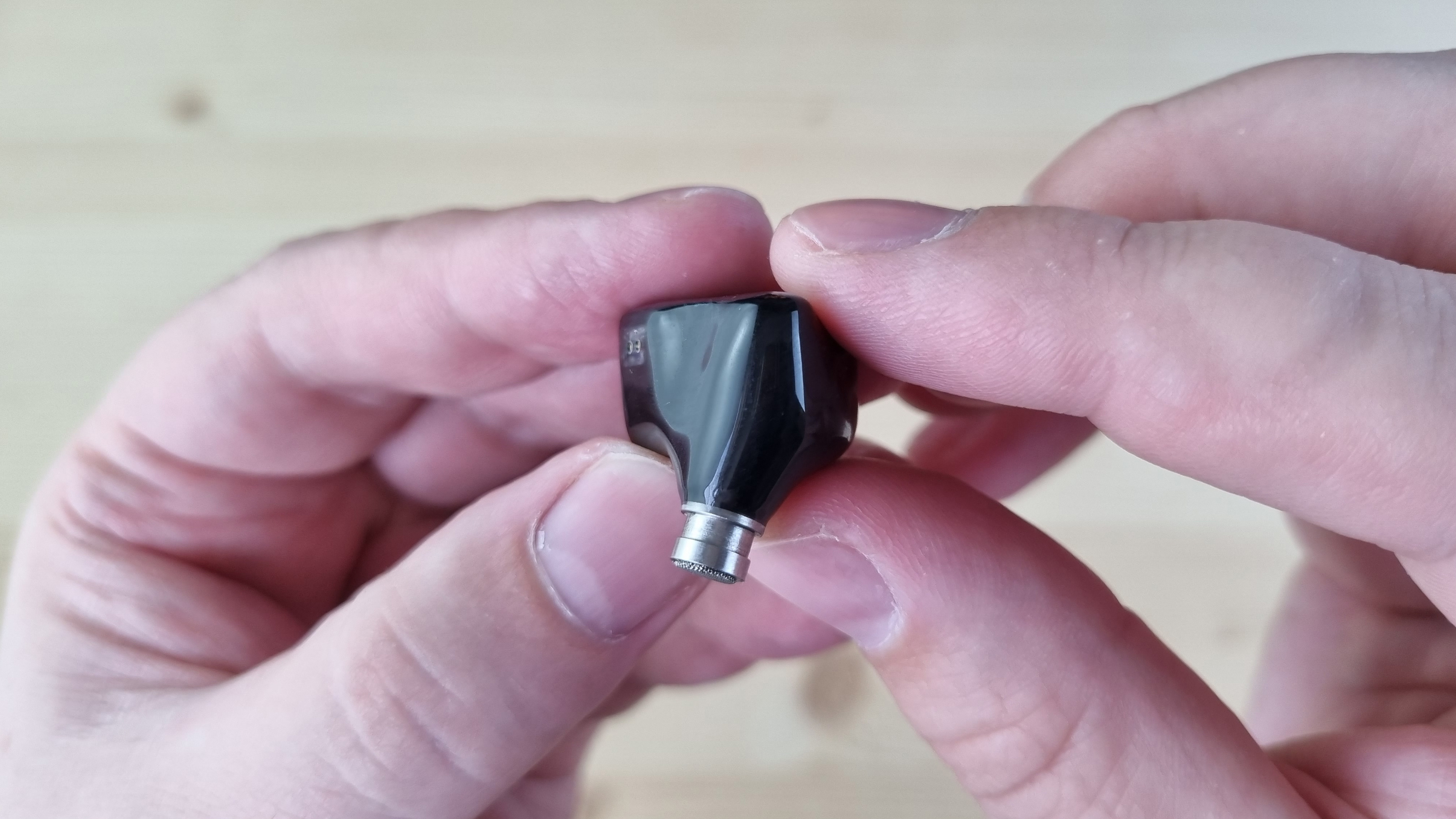 Чашечки полностью сделаны из гипоаллергенной смолы, с металлическим звуководом, серийным номером, отверстием для компенсации направленным назад и абстрактно оформленной внешней частью.