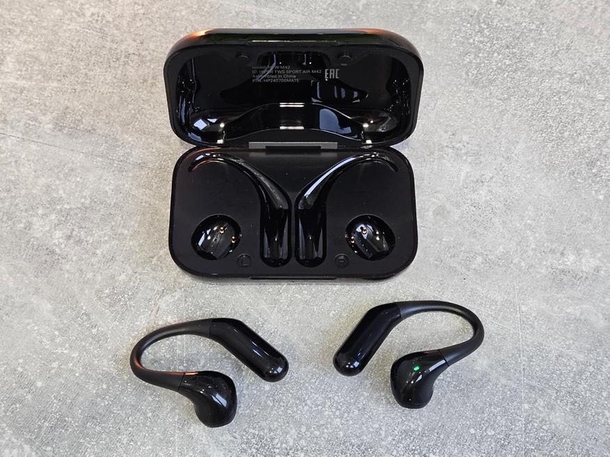 Открытые наушники, также известные как наушники с прозрачным дизайном, имеют несколько важных преимуществ и применений. Они позволяют пользователям оставаться осведомленными о окружающем их мире, одновременно наслаждаясь аудио. Это делает их идеальным выбором для тех, кто нуждается в возможности слышать окружающие звуки, например, при передвижении по городу, работе в офисе или учебе в шумной среде. Сегодня знакомимся с представителем этого семейства — HIPER TWS Sport Air M42 Black.