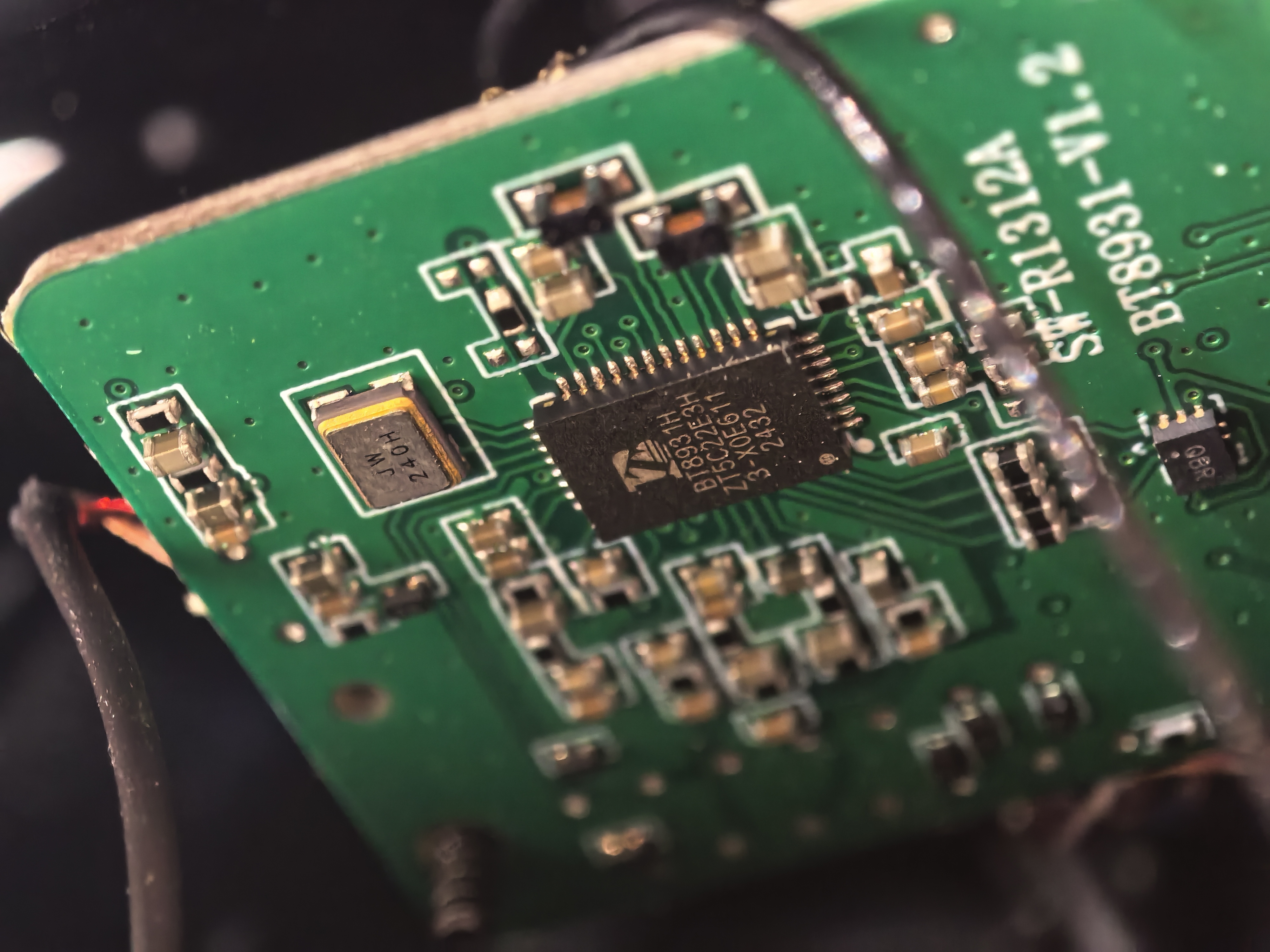 С правой стороны плат больше на одну. На боковой находятся кнопки, в центре основные контроллеры. На второй должен находится усилитель, но я, наверное, не смог его увидеть из-за короткой длины кабелей. На четвертой фотографии показал главную микросхему — Bluetooth ЦАП, Bluetrum BT8931H. Kiwi Ears плотно сотрудничает с локальным брендом, используя ЦАПы его серии в своих полноразмерных и OWS наушниках, как Kiwi Ears Aventus и Attiva (обзор здесь), соответственно.