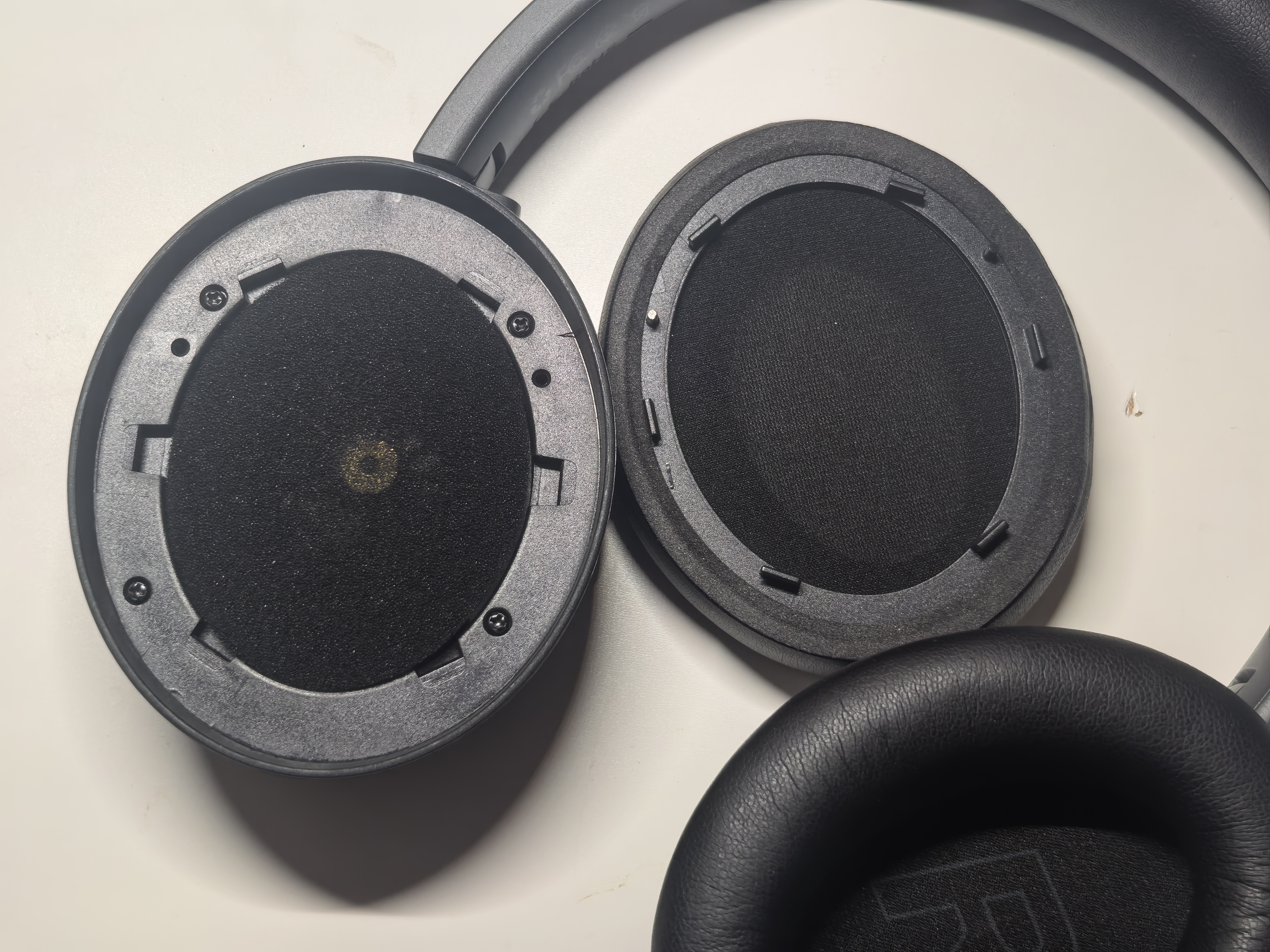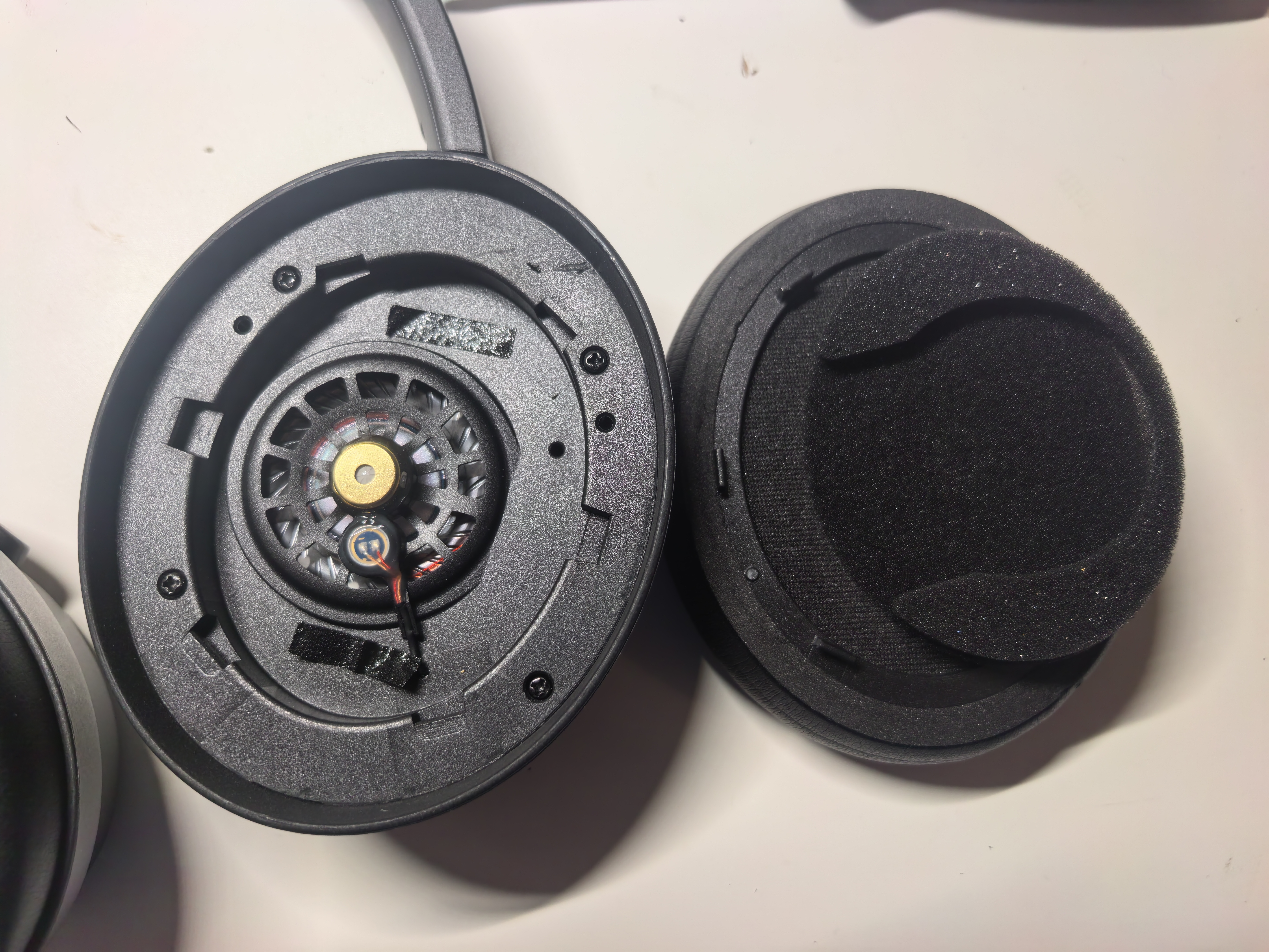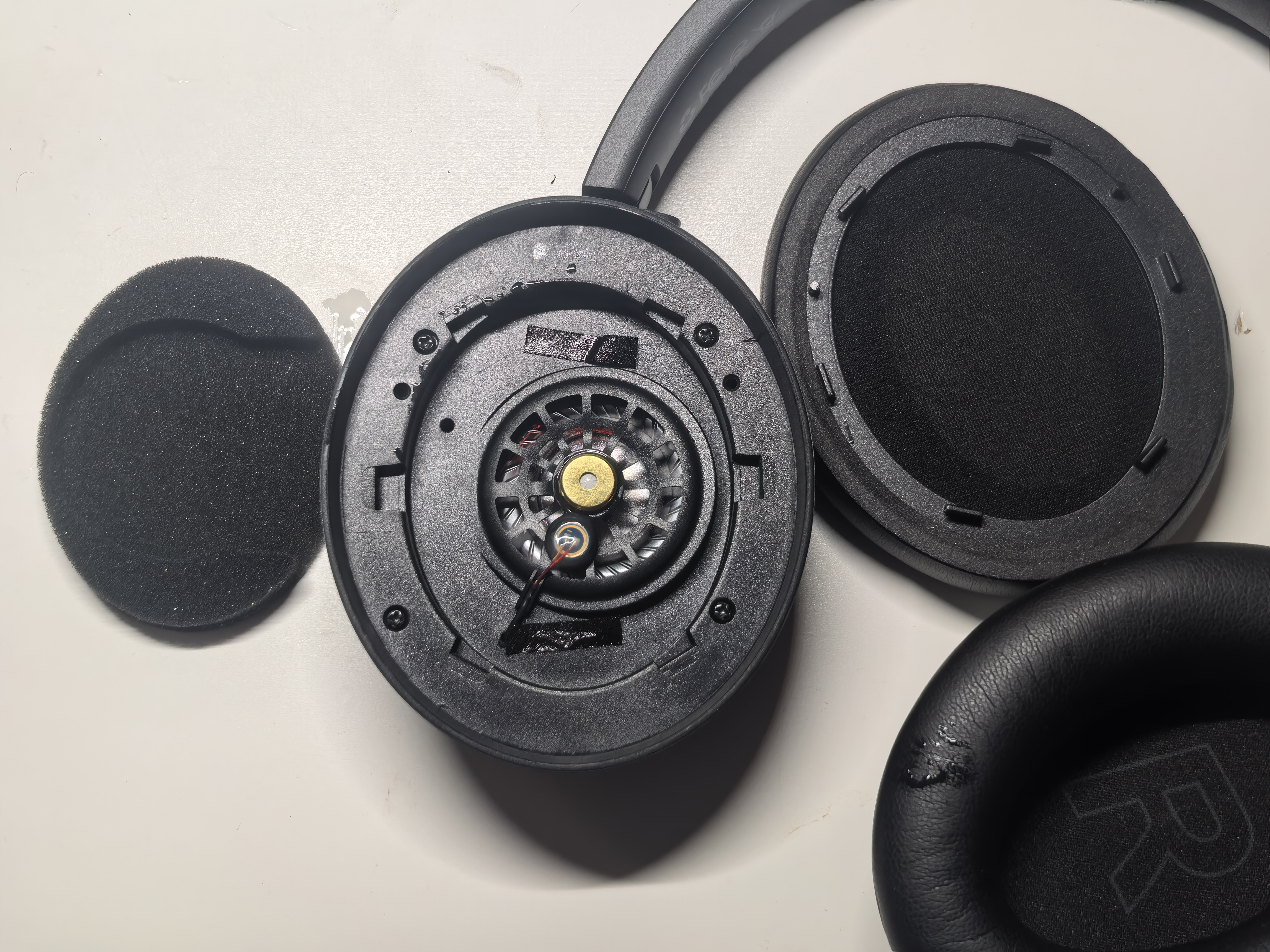 Я давно не разбирал наушники. Сняв амбушюры и открутив шурупы, не понял, как дальше проводить разборку, так как конструкция показалась литой.