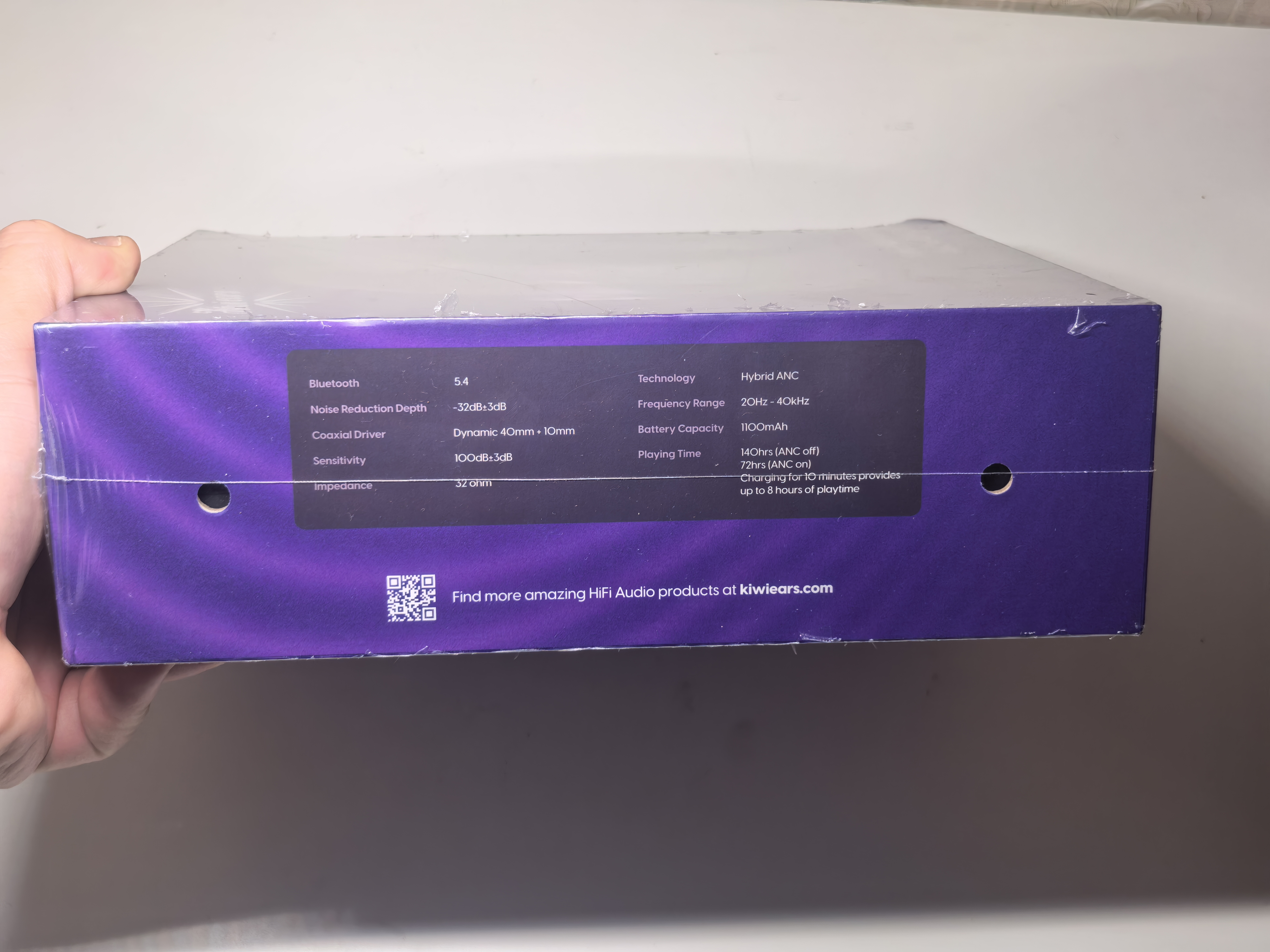 Часть информации о товаре представлена на коробке. Установлены два динамика, один над другим, по 40 и 10 мм. Современный протокол Bluetooth 5.4, шумоподавление и мультипоинт. Все бы хорошо, но кодеки только AAC, SBC. Для исключительно аудио ориентированных брендов базовые кодеки не проблема. Звук они умеют настраивать.