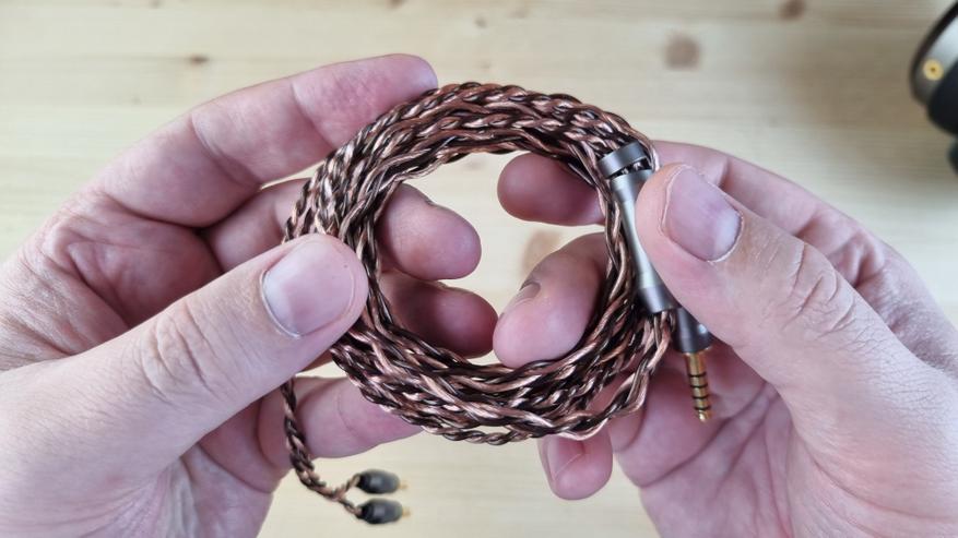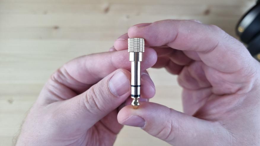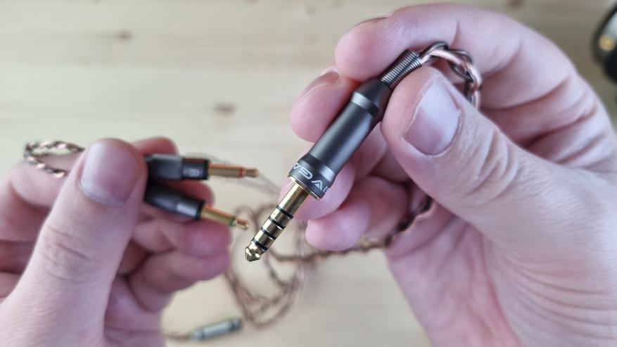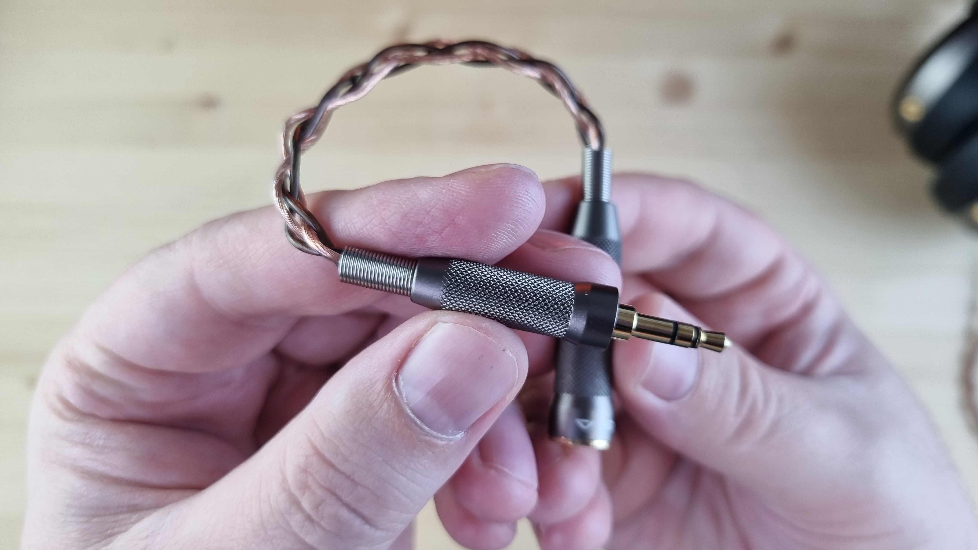 В комплект положили плотный бокс, совсем простой мешочек, переходник на 6.35 мм, ещё один с балансного на 3.5 мм джек и относительно длинный витой кабель с коннекторами на 3.5 мм.