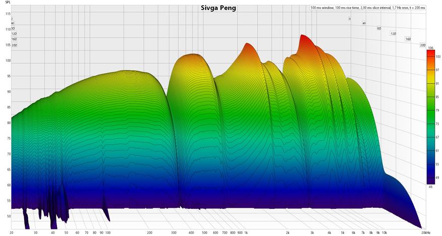 По АЧХ же мы имеем подъем низких частот примерно на 3 дБ, с заметным ослаблением саб части, вполне корректное выделение области разборчивости, акцент на псевдодетализации и протяженные, на хорошем уровне, высокие частоты. Что сказать, график далеко не идеал, видимо настраивали его не по популярным таргет-кривым, а по реальным возможностям использованного излучателя.