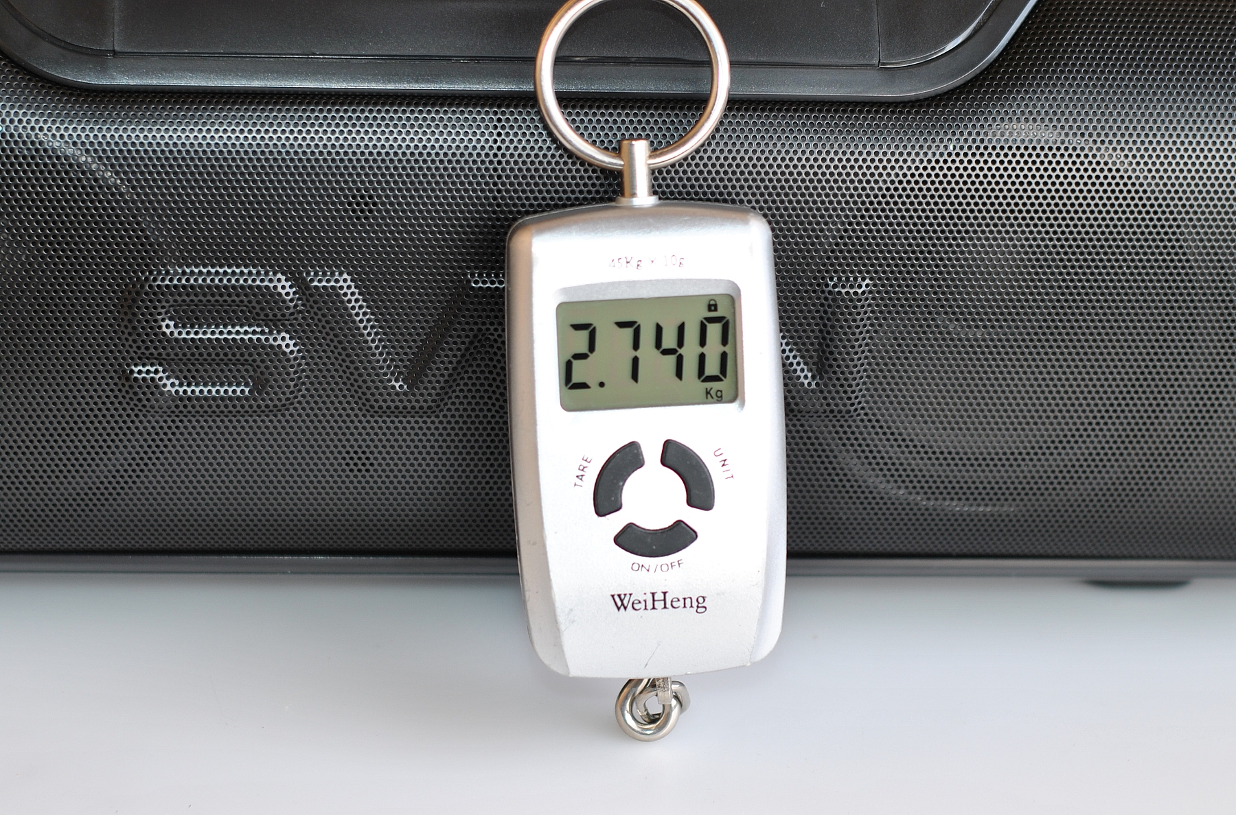 По моему мнению, Sven PS-390 имеет самый удачный форм-фактор портативной колонки для использования на улице. Да и размер подходящий, еще носимый. Форма: прямоугольник с ухватистой ручкой, динамики спереди за металлической сеткой, пассивные излучатели по торцам, а кнопки управления сверху. Все логично.