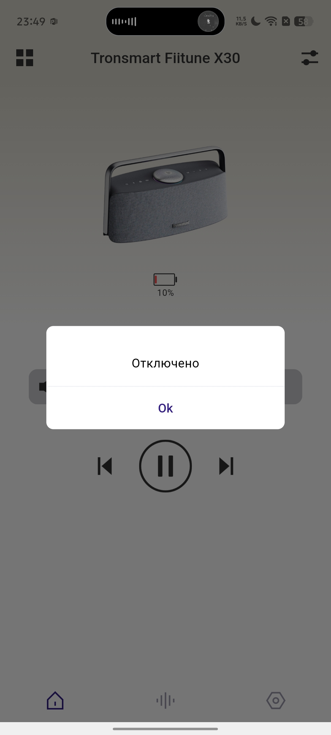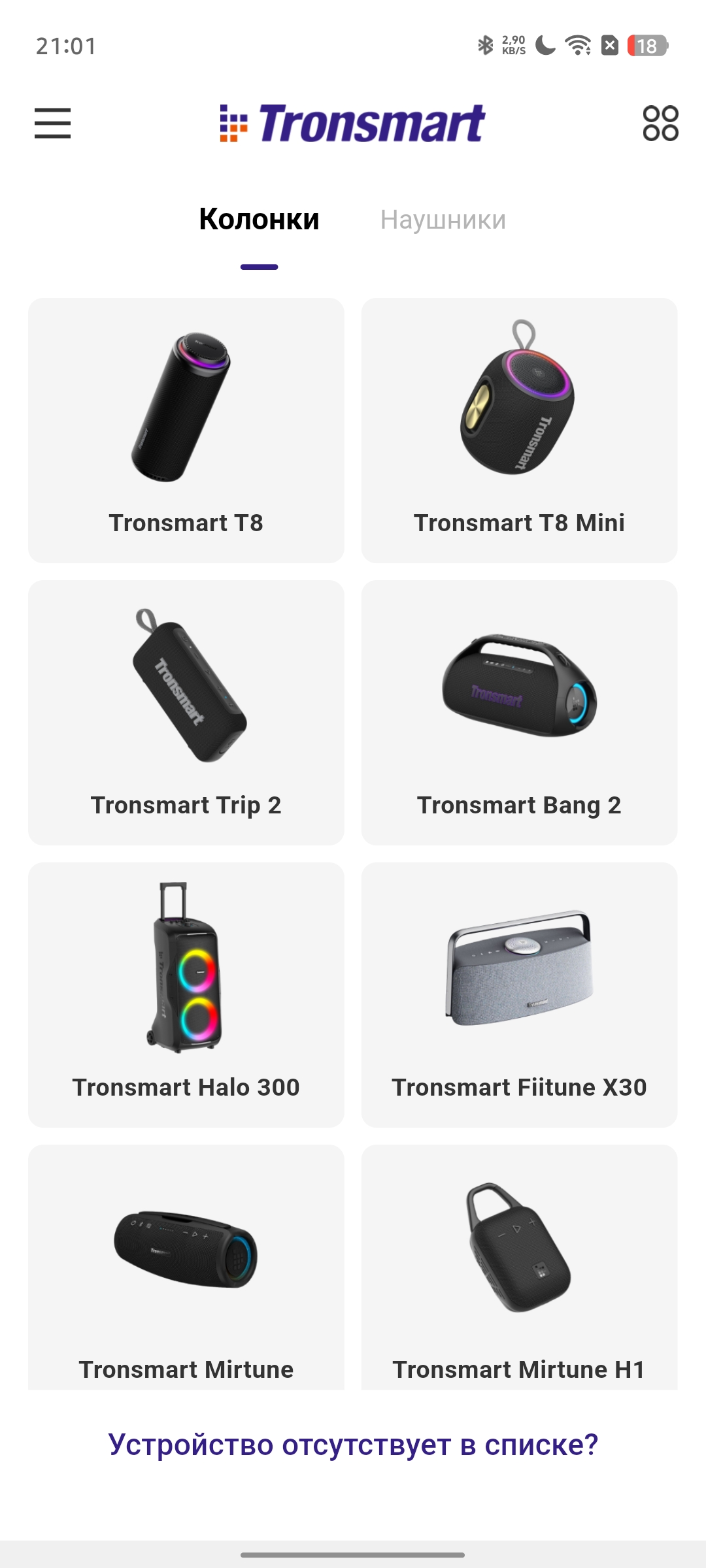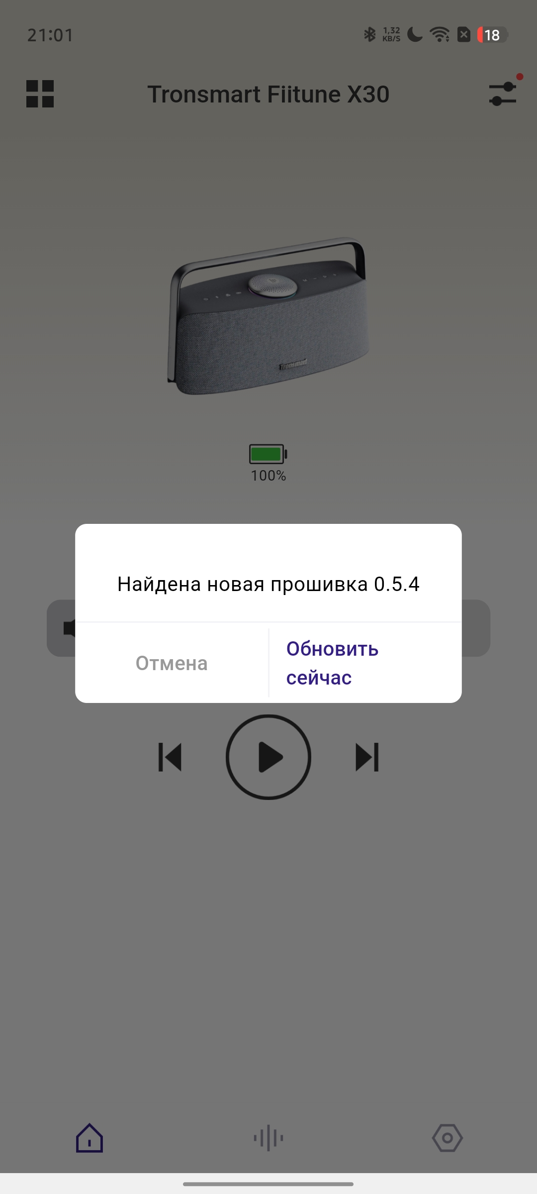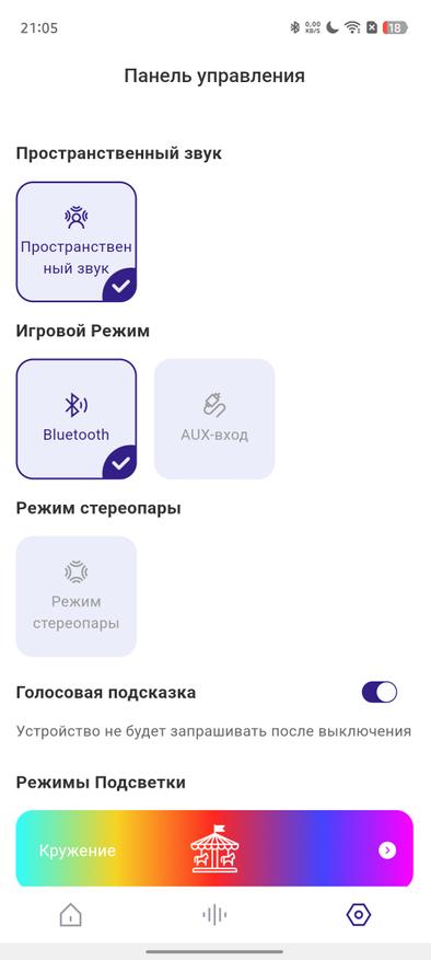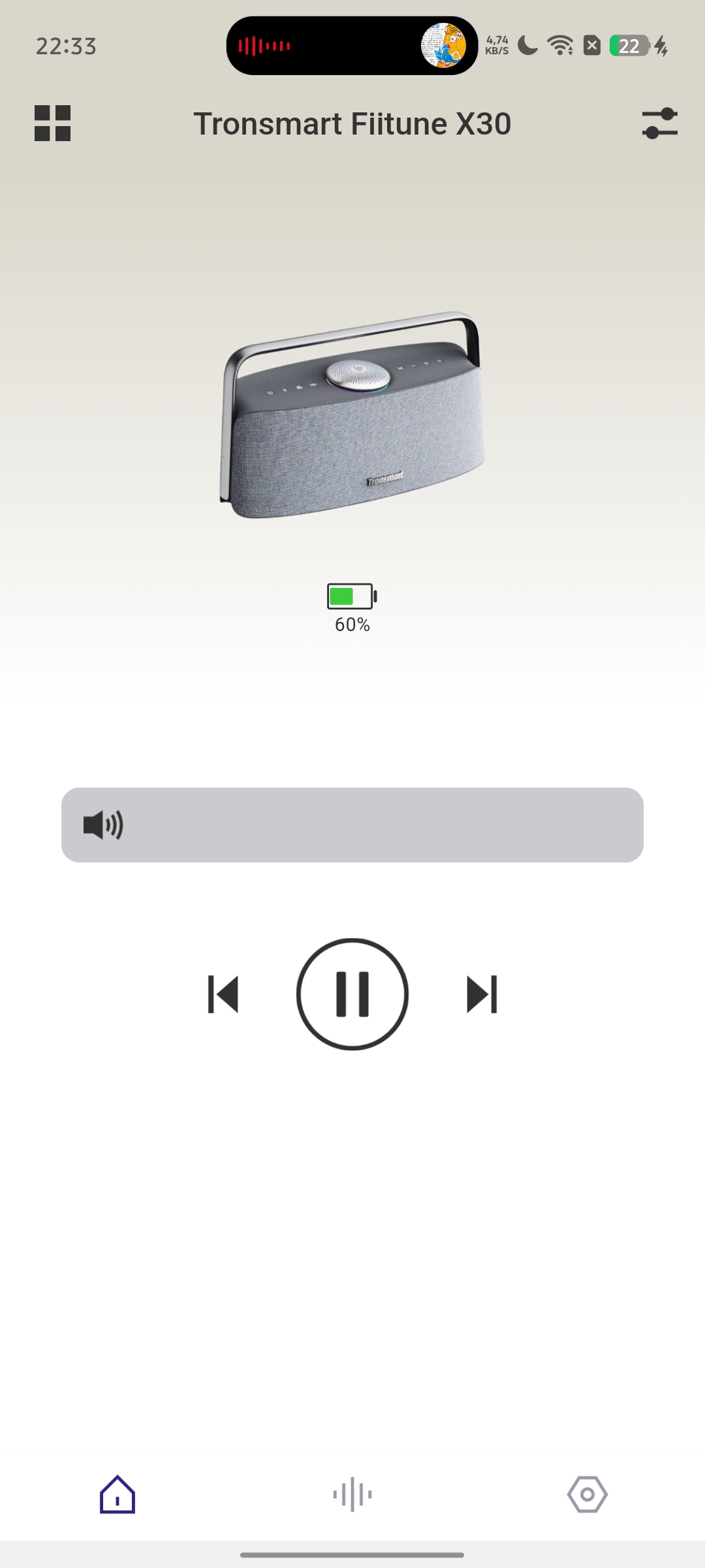 Как и многие современные портативные колонки, Tronsmart Fiitune X30 поддерживает работу с фирменным мобильным приложением. После подключения попадаем в главное меню, которое будет знакомо владельцам устройств бренда — оно остается единым для разных моделей.