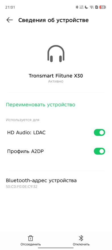 Также Fiitune X30 получила отдельный DSP-процессор с поддержкой Hi-Res Audio за счет широкого частотного диапазона вплоть до 40 кГц. Tronsmart пошли на компромисс, так как частота свыше 20 кГц не воспринимается человеческим слухом, однако это позволяет получить заветный сертификат Hi-Res Audio. Плюс есть поддержка кодека Sony LDAC, а значит можно транслировать аудио с высоким битрейтом (до ~990 кбит/с).