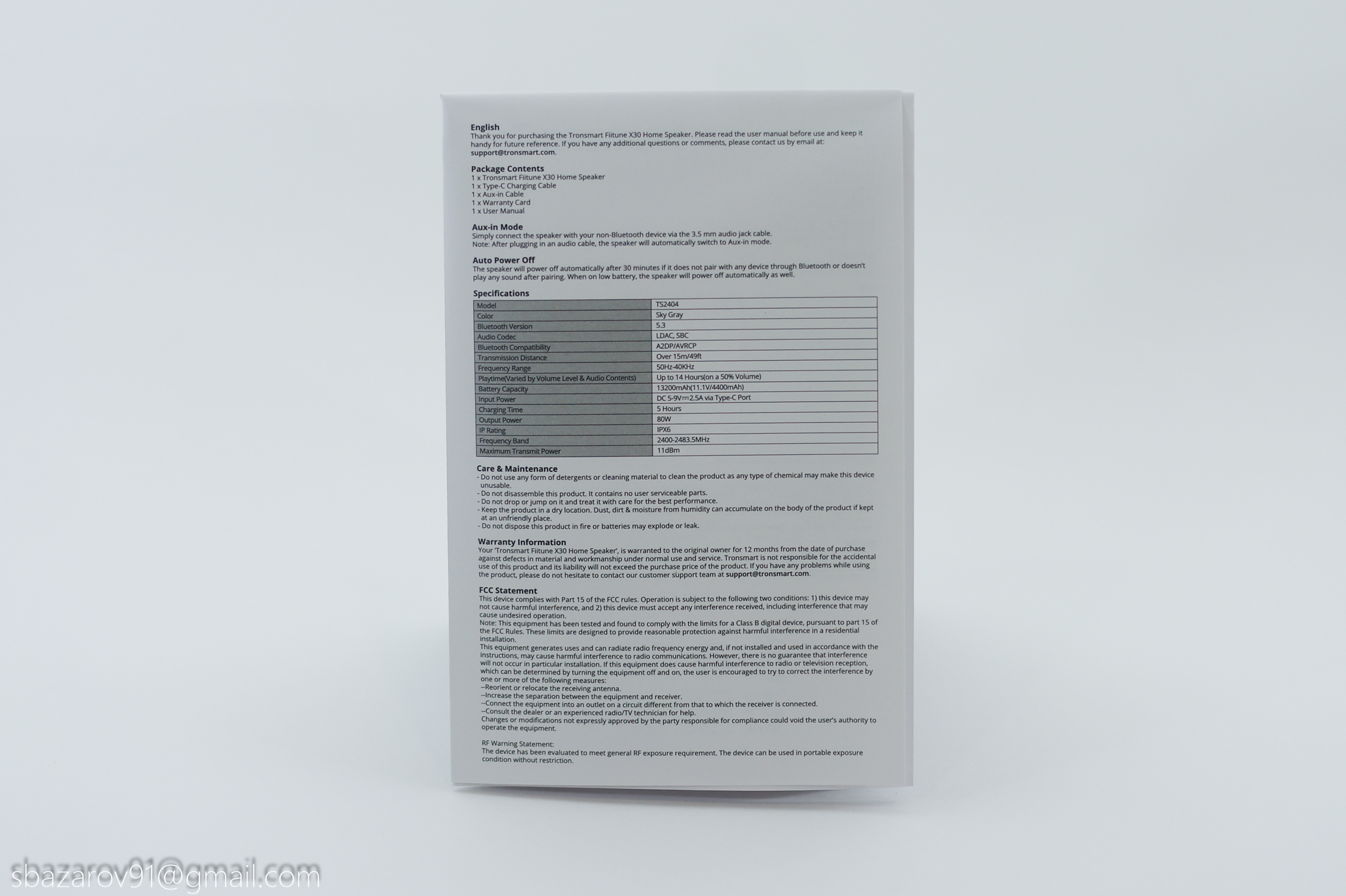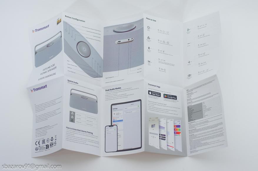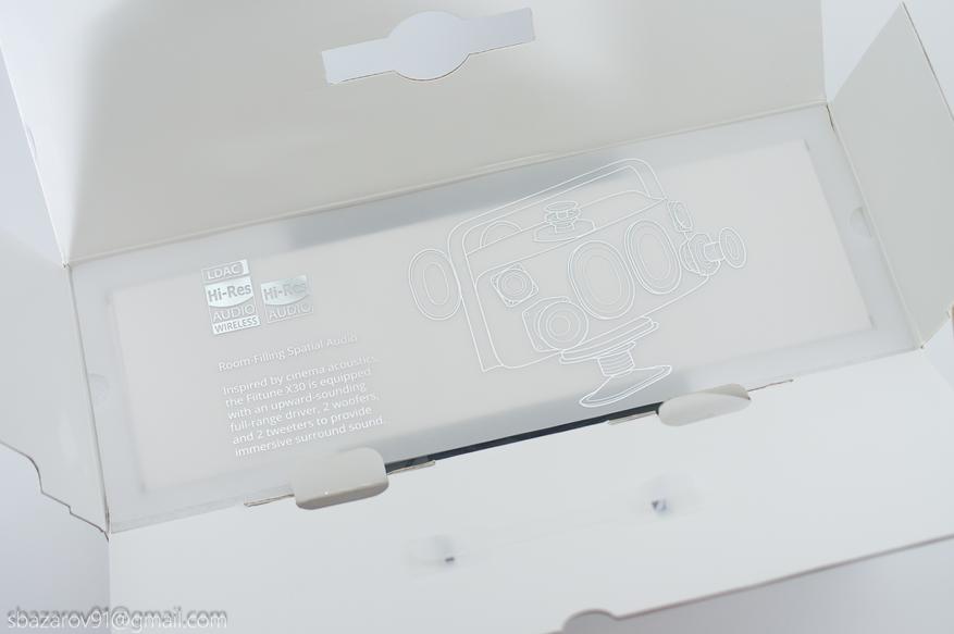 Так как Fiitune X30 позиционируется брендом как премиальная акустика, то при распаковке нас встречает прозрачный вкладыш. Он знакомит со звуковой системой колонки и рассказывает о поддержке LDAC (кодек от Sony, способный воспроизводить высокий битрейт до 990 кбит/с), Hi-Res AUDIO и Hi-Res AUDIO WIRELESS (проводное и беспроводное воспроизведение с высокой частотой дискретизации).
