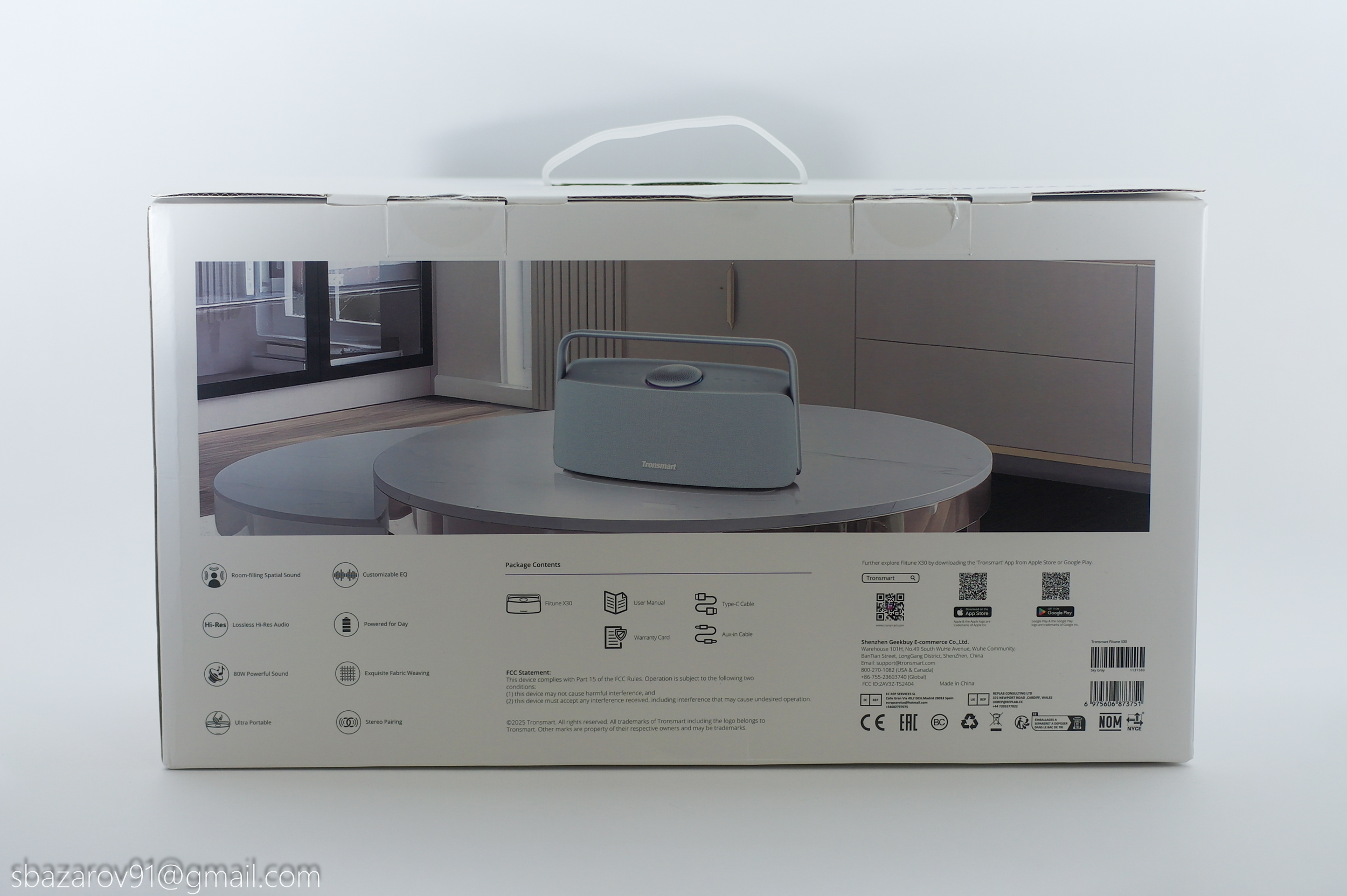Tronsmart Fiitune X30 поставляется в светлой коробке с красочными иллюстрациями, но в минималистичном стиле. Для удобной переноски предусмотрена ручка в верхней части.