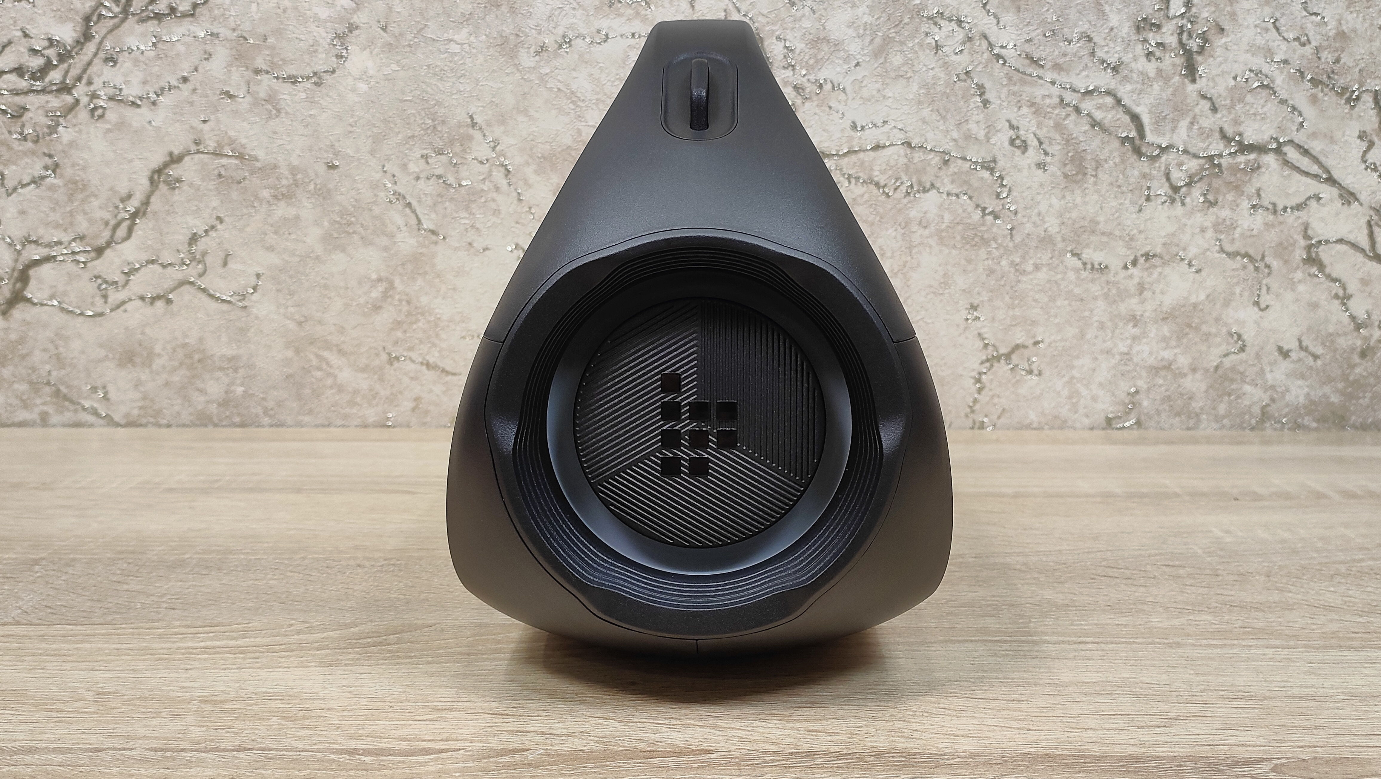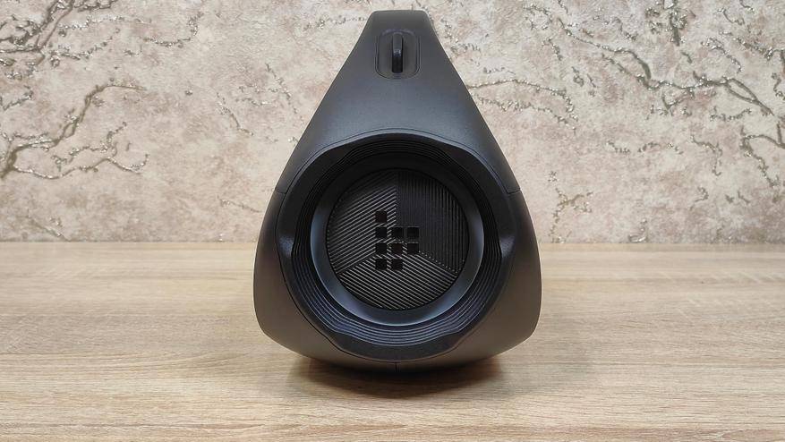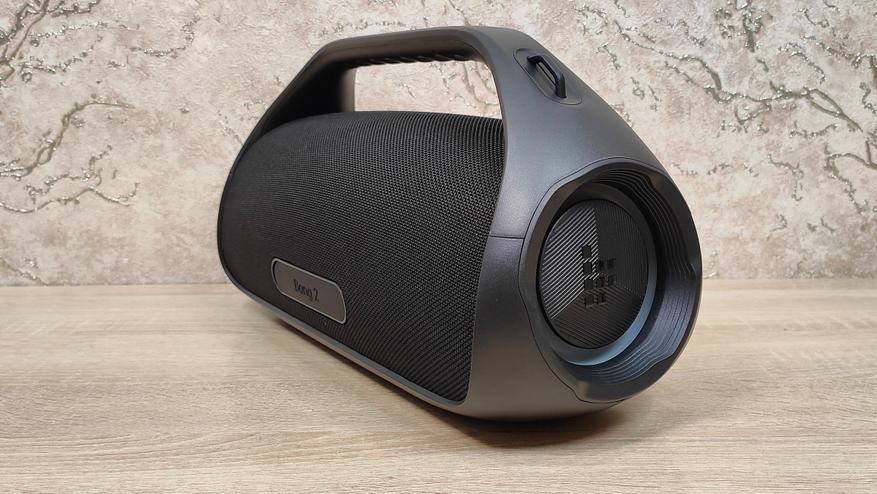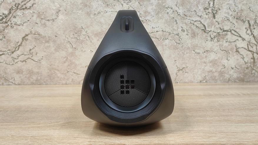 Колонка, можно сказать, имеет классический вид — это некий цилиндр с присоединённой сверху ручкой. По сути, не компактные и ультракомпактные колонки все имеют подобные вид, то есть цилиндр или прямоугольник с ручкой, либо в виде колонны. Строение тоже более-менее распространённое: спереди динамики прикрытые сеткой, а по бокам есть пассивные излучатели. Органы управления здесь сосредоточены в верхней части, всегда на виду и легко доступны для использования. Естественно, производитель не забыл про своё имя и нанёс его сиреневым на лицевую сторону по центру.