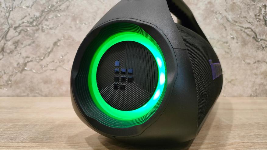 Я уже сказал, что колонка громкая, из-за чего тестировать непрерывно на 70% (я обычно на такой громкости тестирую автономность) дома затруднительно, т.к. банально громко. Поэтому я опустил планку до 50%, убрал ее подальше, включил зацикленную композицию и стал ждать. В итоге колонка выключилась достигнув примерно 14 часов 30 минут с включенной подсветкой, что за мой взгляд очень неплохой результат. Напомню еще раз, что колонка может отдавать энергию, заряжая смартфоны/планшеты.