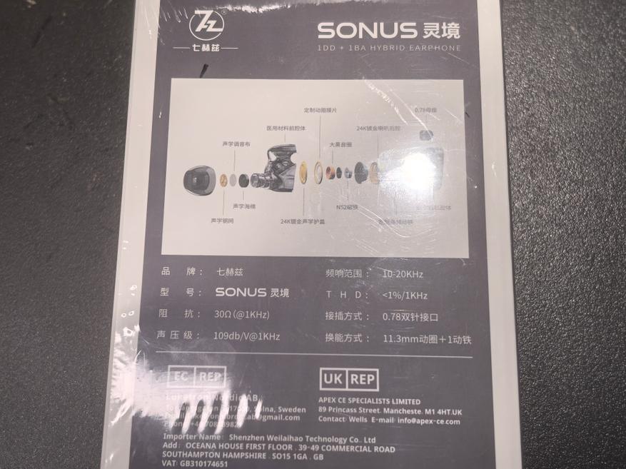 Модель Sonus -гибридная. В ее составе два типа излучателей: один динамический в 11,3 мм и второй балансный. У арматурного излучателя нет номера, как минимум производитель не даёт по нему информацию.