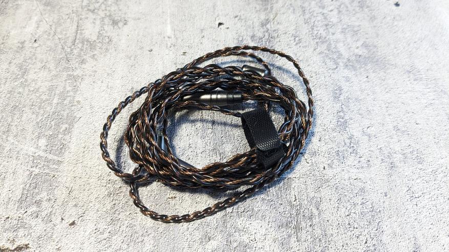 Провод совсем не запоминает форму. В любой ситуации расправляется в ровное положение. Другой момент — он очень часто запутывается, а за счёт слегка липкой оплётки его весьма неприятно распутывать. Штекер примитивный, так как он не позволяет поменять джек на балансный. Заушины мягкие и послушные — уши не натирают.
