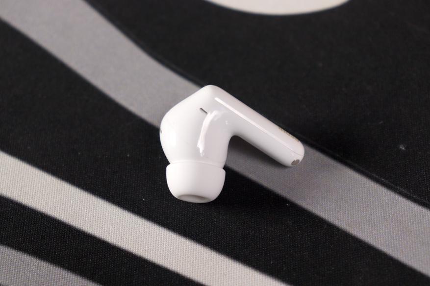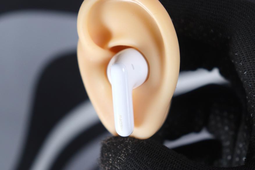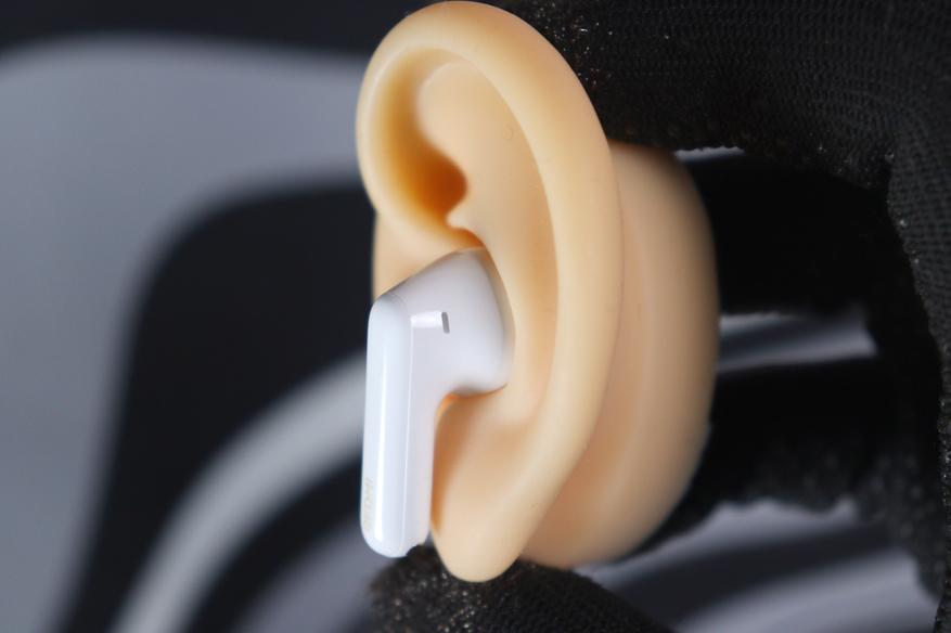 Наушник садится естественно, не выпирает и не давит на козелок. Ножка уходит вниз под небольшим углом — именно такой наклон снижает нагрузку на ушной канал при длительном ношении.