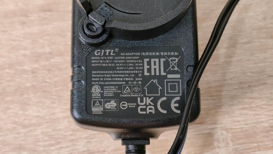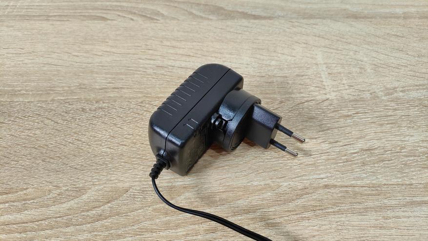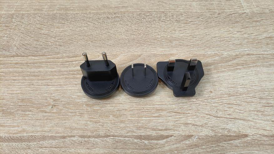 Блок питания имеет съёмную вилку, а самих вилок здесь три. Мощность адаптера равна 30 Вт при напряжении 24 В. Напряжение и разъём не какие-то проприетарные, а значит заменить их вполне можно будет при необходимости, даже если это какой-нибудь PD блок через триггер.