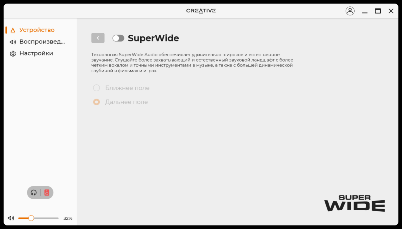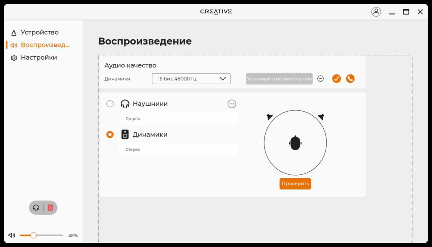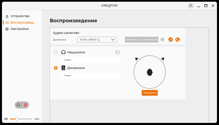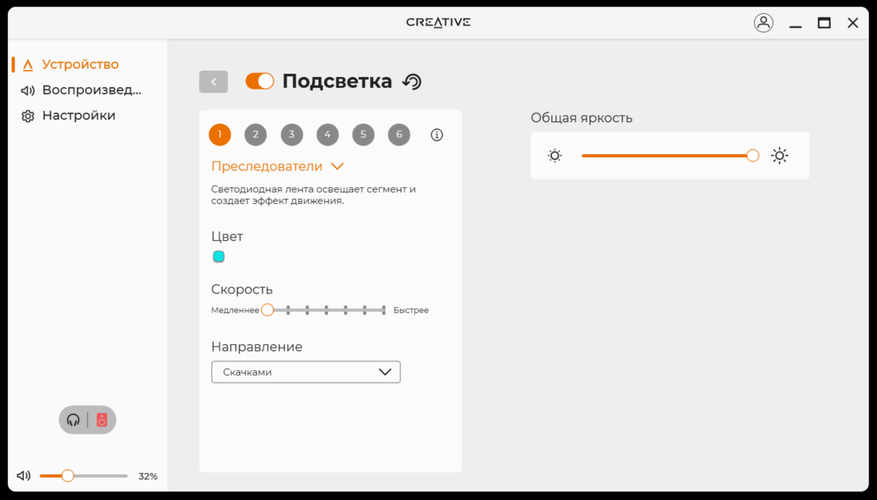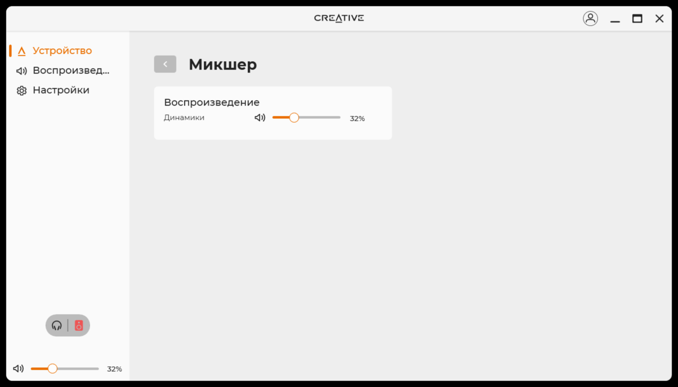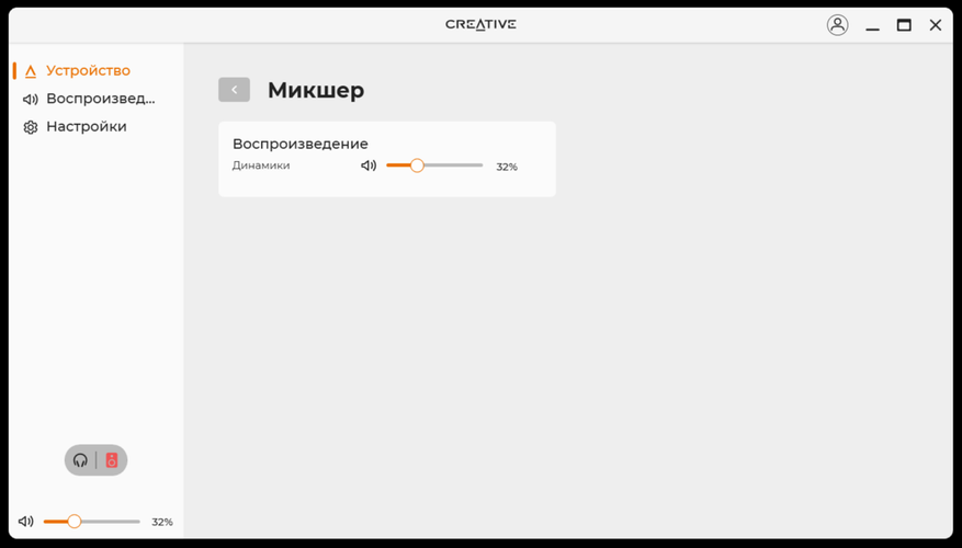 По большому счёту, программное обеспечение похоже на то, что поставляется к разного рода колонкам или наушникам. Кроме того, подобное ПО есть почти к каждому устройству Creative. После установки и запуска, сразу все полезло обновляться, включая прошивку. В нём есть базовая необходимая функциональность по настройке звука и в целом устройства. Я бы сразу начал с настройки эквалайзера или, хотя бы, использования готового профиля «музыка».
