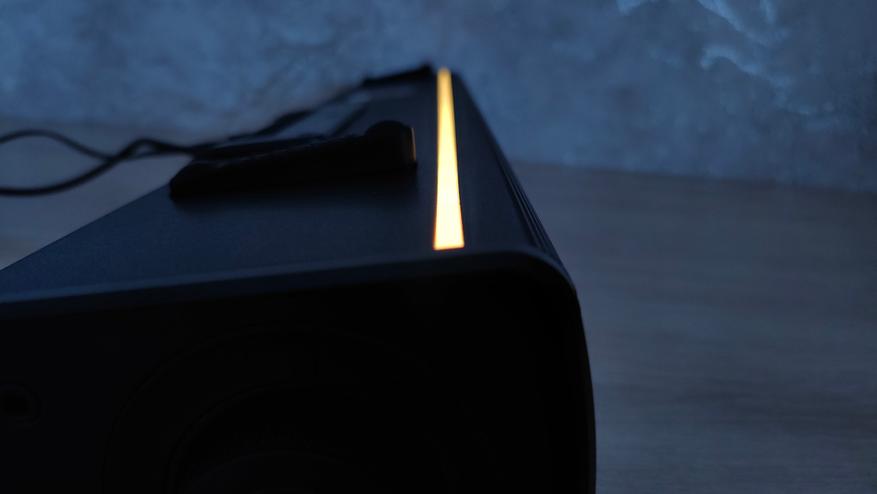 Как бы похоже не было это устройство на обычную, хоть и большую, Bluetooth колонку, это не она, соответственно встроенного аккумулятора в ней нет. А вот подсветка есть, ненавязчивая и настраиваемая.