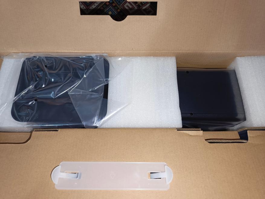 Саундбар поставляется в прочной фирменной коробке с качественной полиграфией. Для удобства переноски предусмотрена пластиковая ручка. В комплект поставки входит: