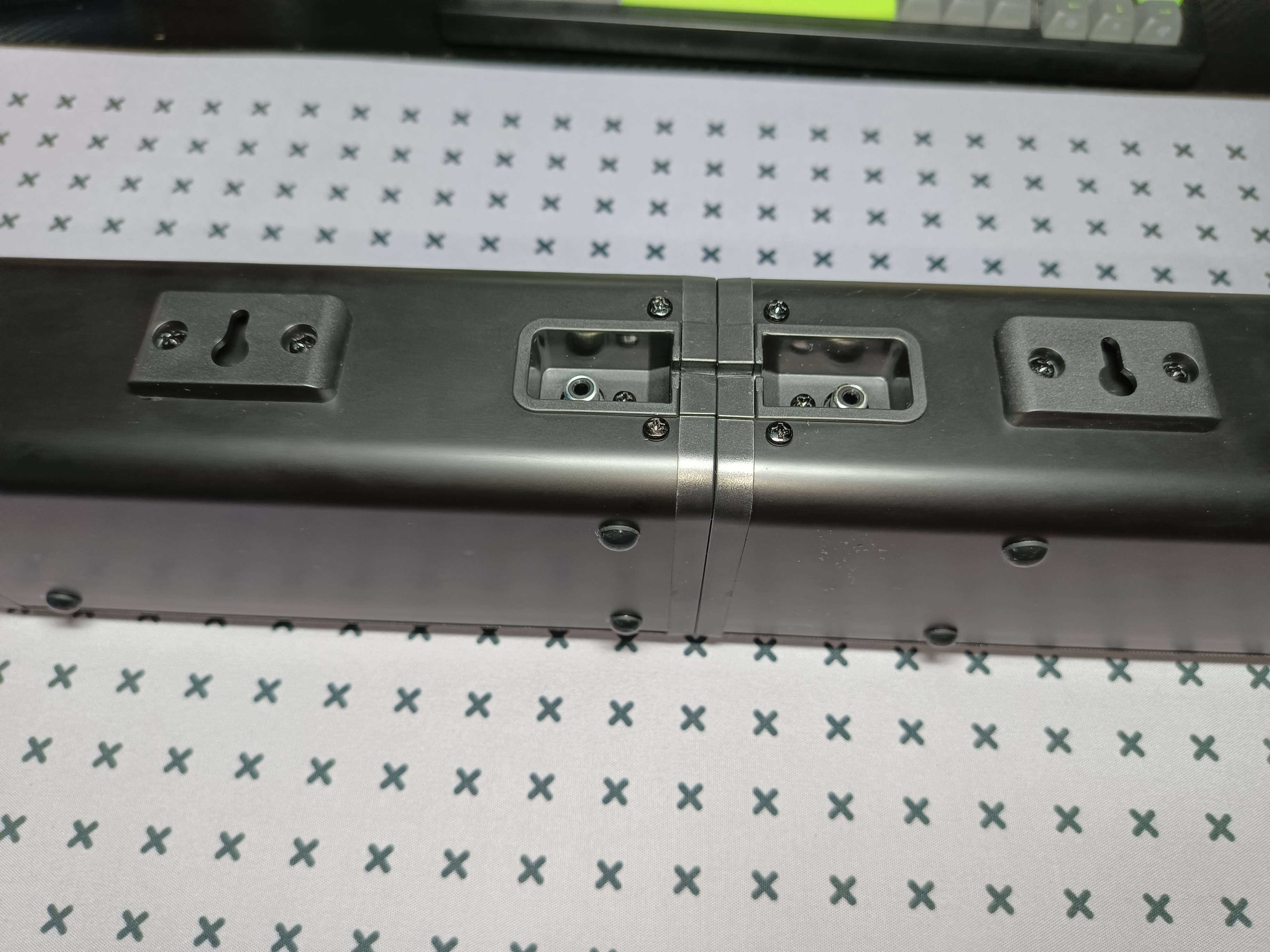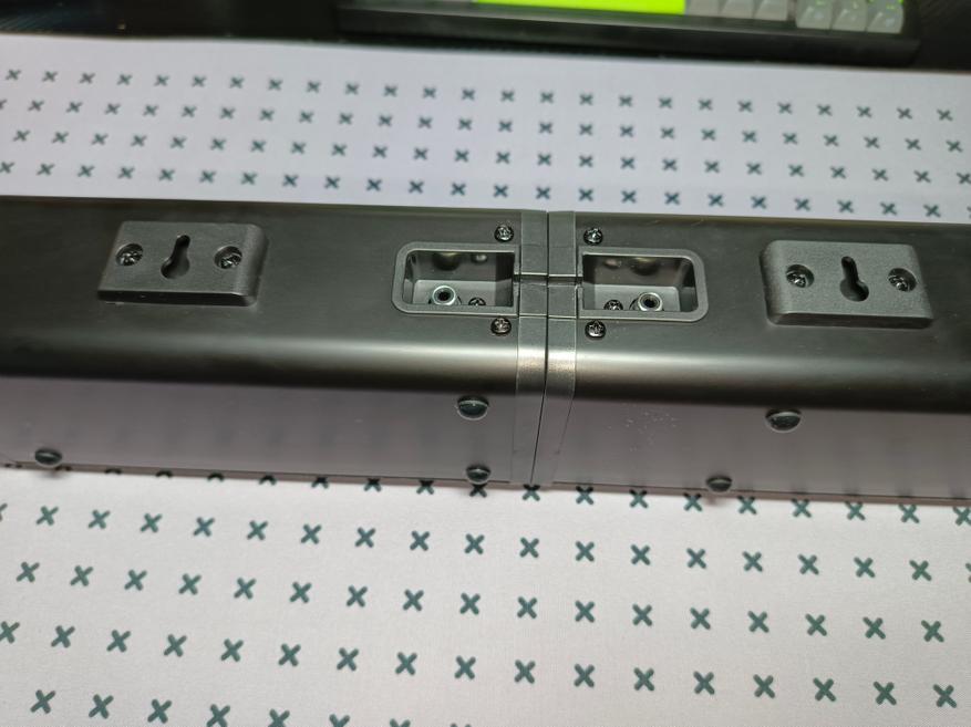 На первый взгляд корпус выглядит привычно: вытянутая прямоугольная форма, минималистичный стиль. Однако конструкция представляет собой трансформер: система разбирается на три отдельных элемента — две боковые колонки и центральный модуль.