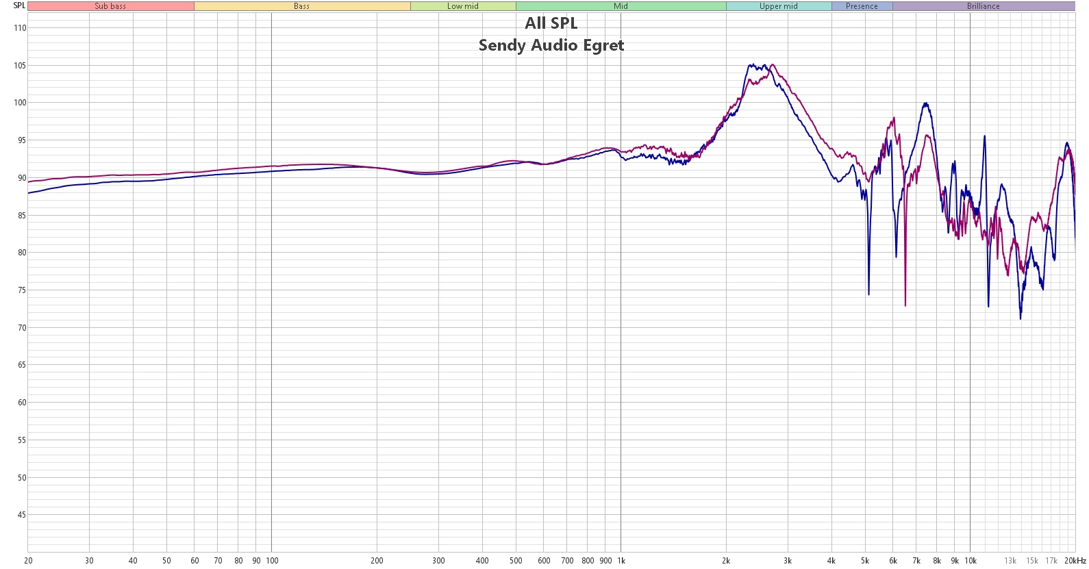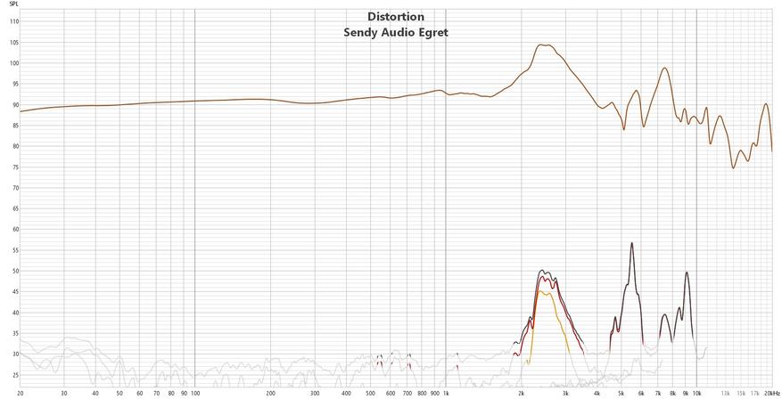 По АЧХ же мы имеем довольно ровный низ и середину, подъем на области разборчивости, ещё один на псевдодетализации и протяженные на хорошем уровне высокие частоты.