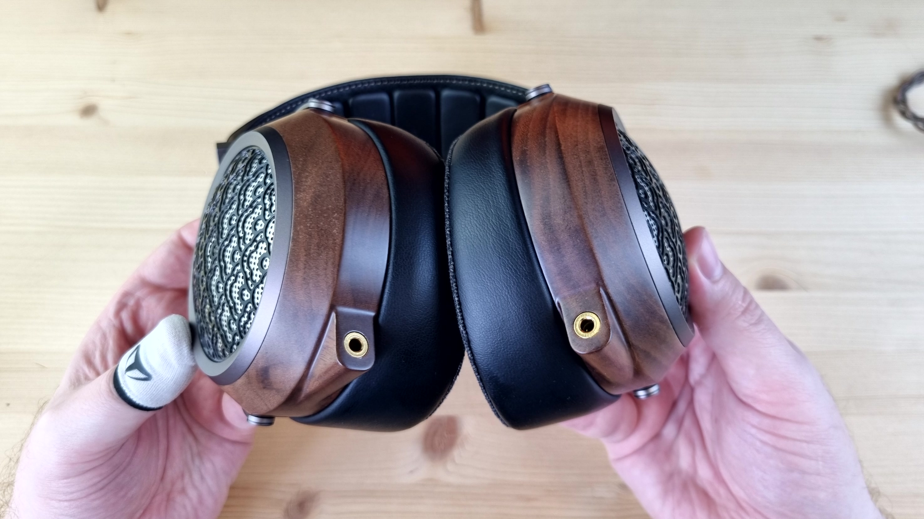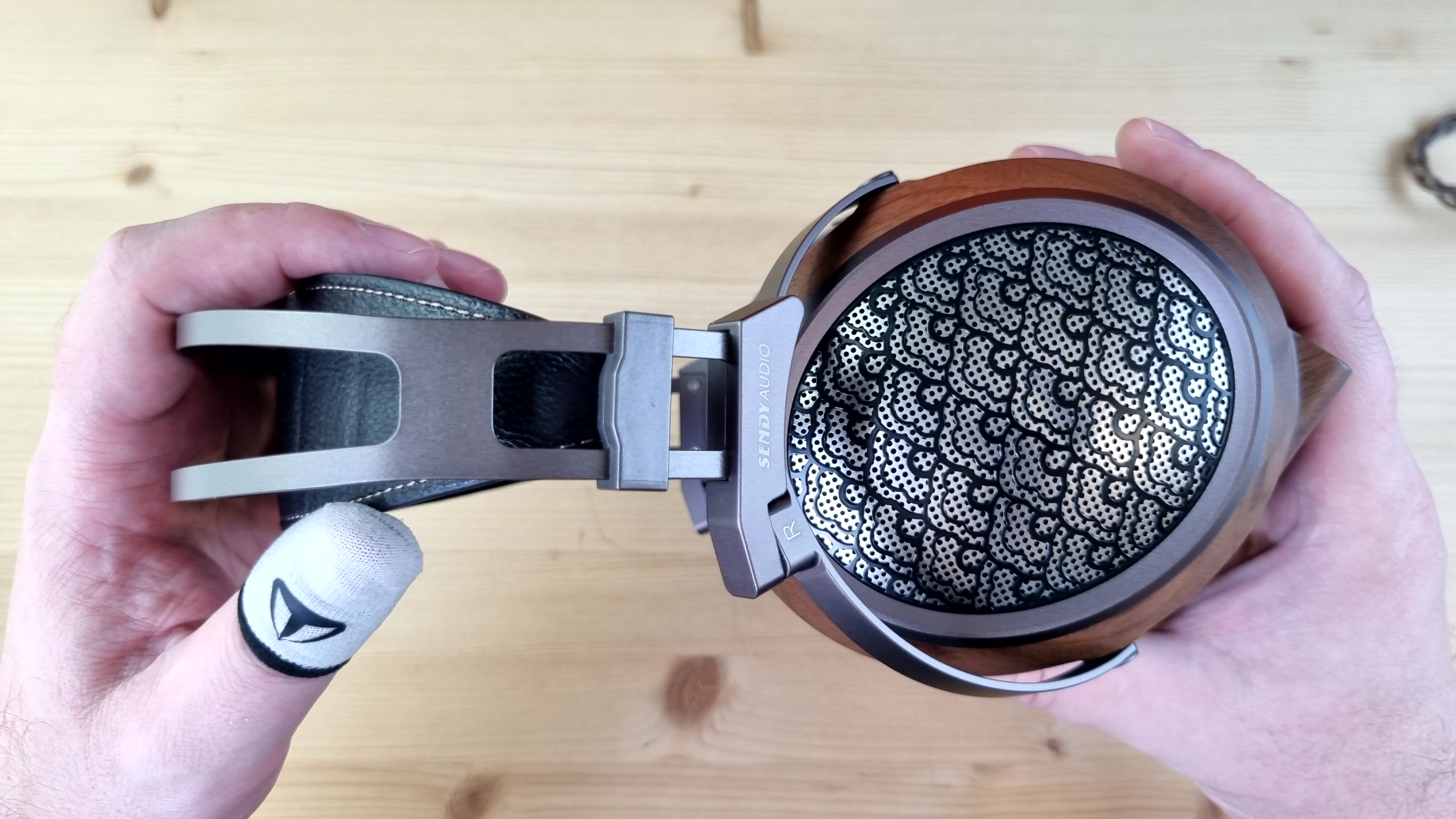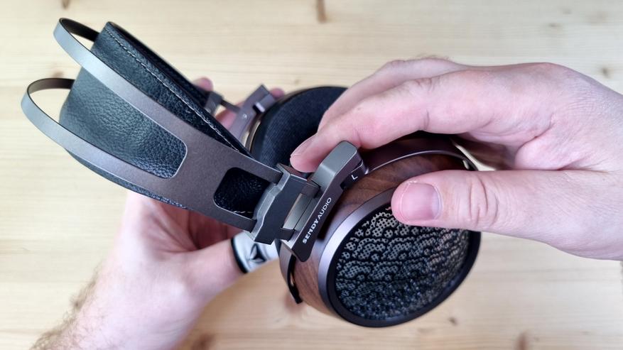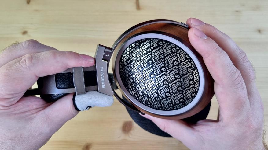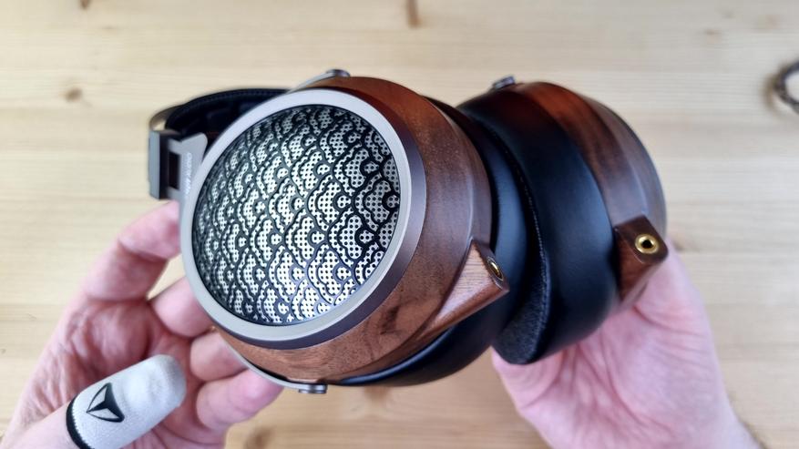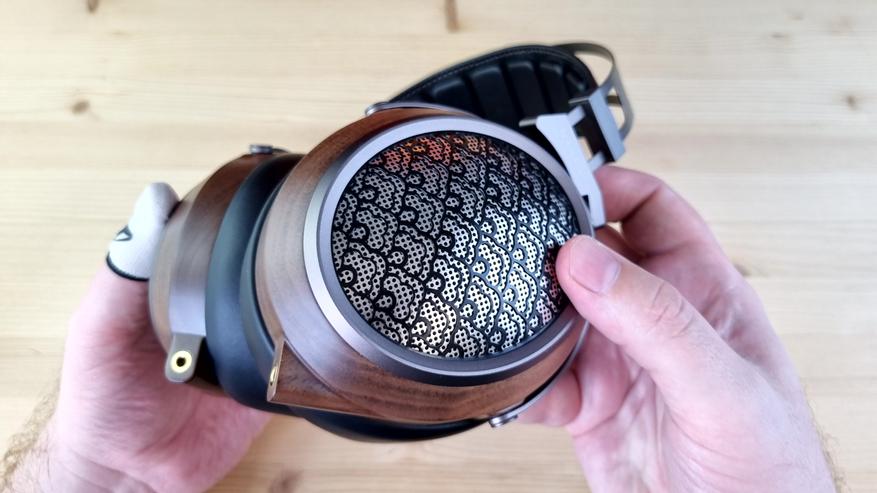 Чашечки, как обычно у Sendy Audio, имеют деревянную основу с перфорированной металлической пластиной на внешней части. Ободок здесь, кстати, тоже из металла, как и все ключевые элементы конструкции.