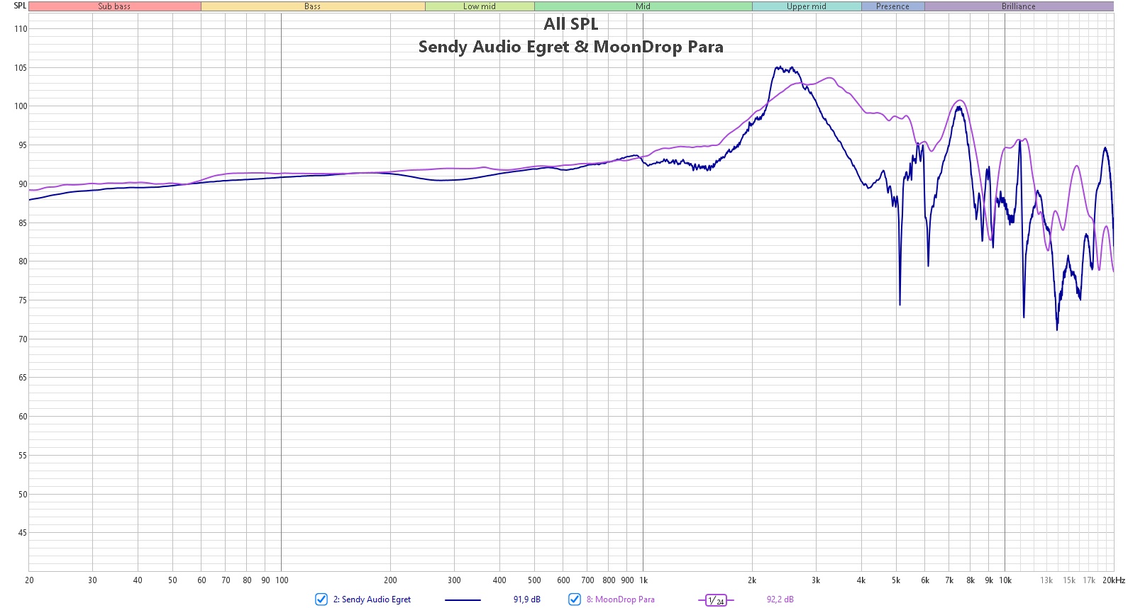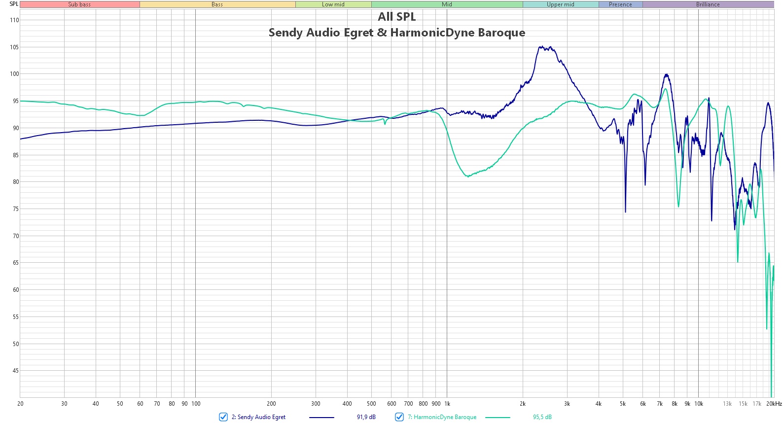 Sendy Audio Aiva 2 не такие выразительные, но в целом графики очень схожи. HarmonicDyne Baroque же массивнее на басах, но с видимой эквализацией в угоду особенностей драйвера. Ну и MoonDrop Para тоже в целом такие же по своей настройке. То есть всё, как говорится, на высочайшем уровне.