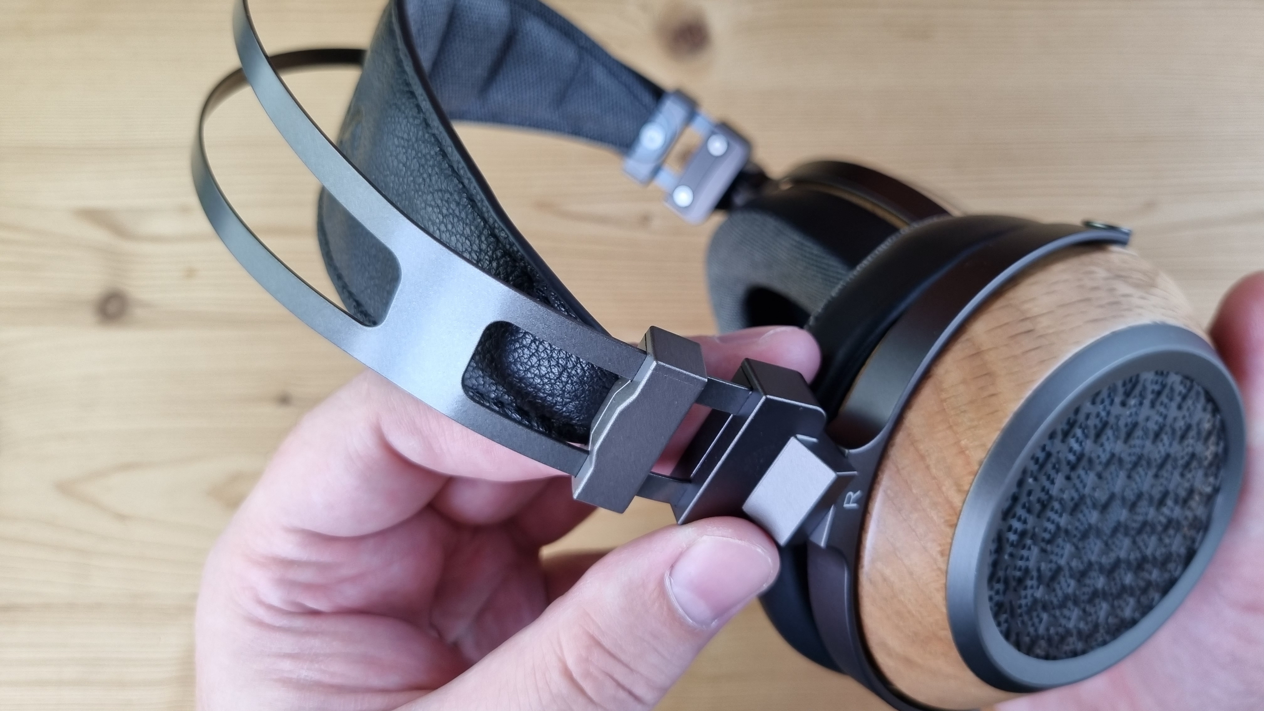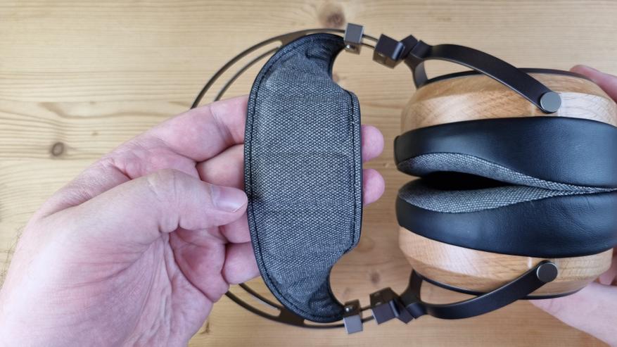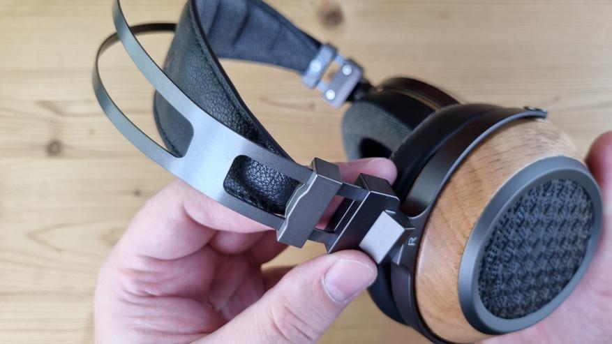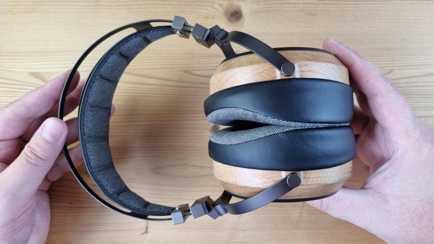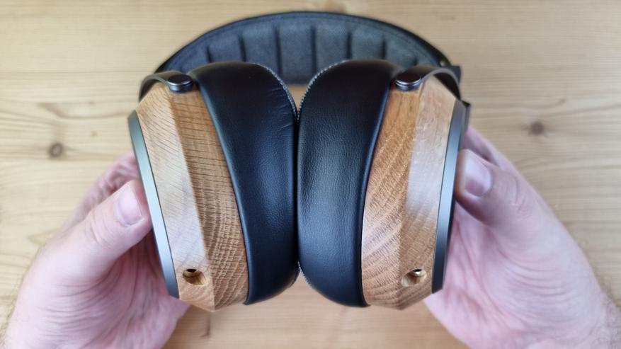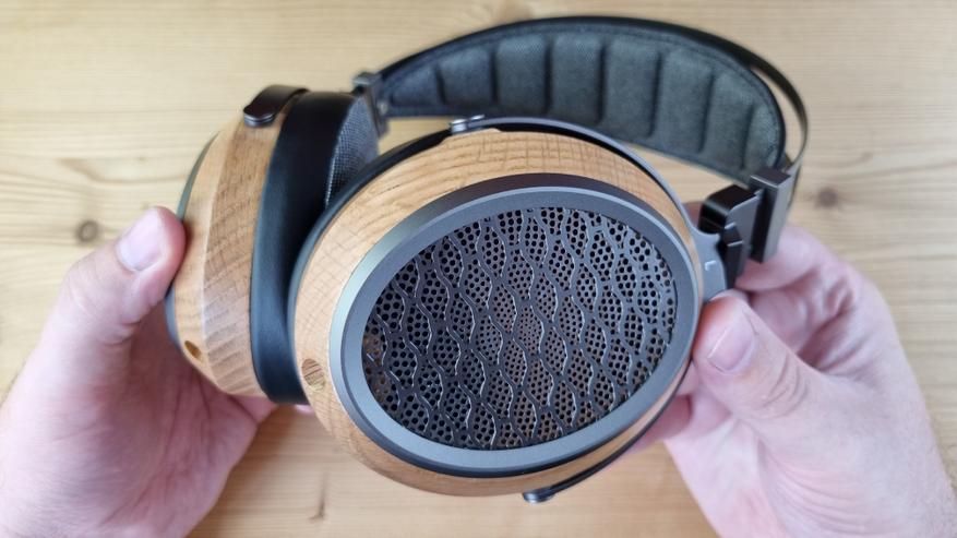 Сама модель имеет открытую полноразмерную конструкцию, с чашечками из натурального дерева, приятным мягким оголовьем и подвижными элементами выполненными исключительно из металла. Да, здесь минимум пластика, не то, что у их конкурентов.