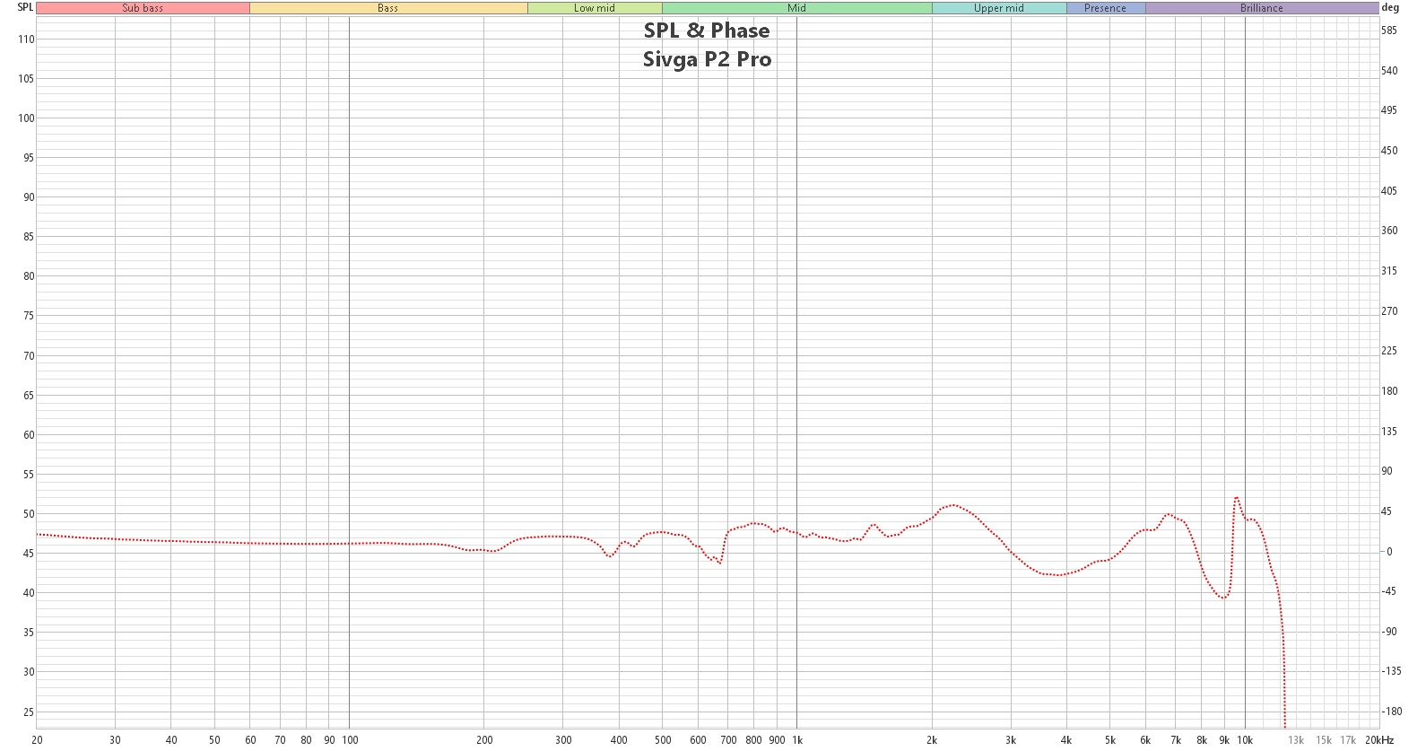 По АЧХ же мы имеем практически идеальную прямую до 2 кГц включительно, затем идет выделение области разборчивости и пик на 7.9 кГц для усиления четкости звучания. После чего нам слегка приподняли область до 14 кГц, а остальное отвели на вторичный план.