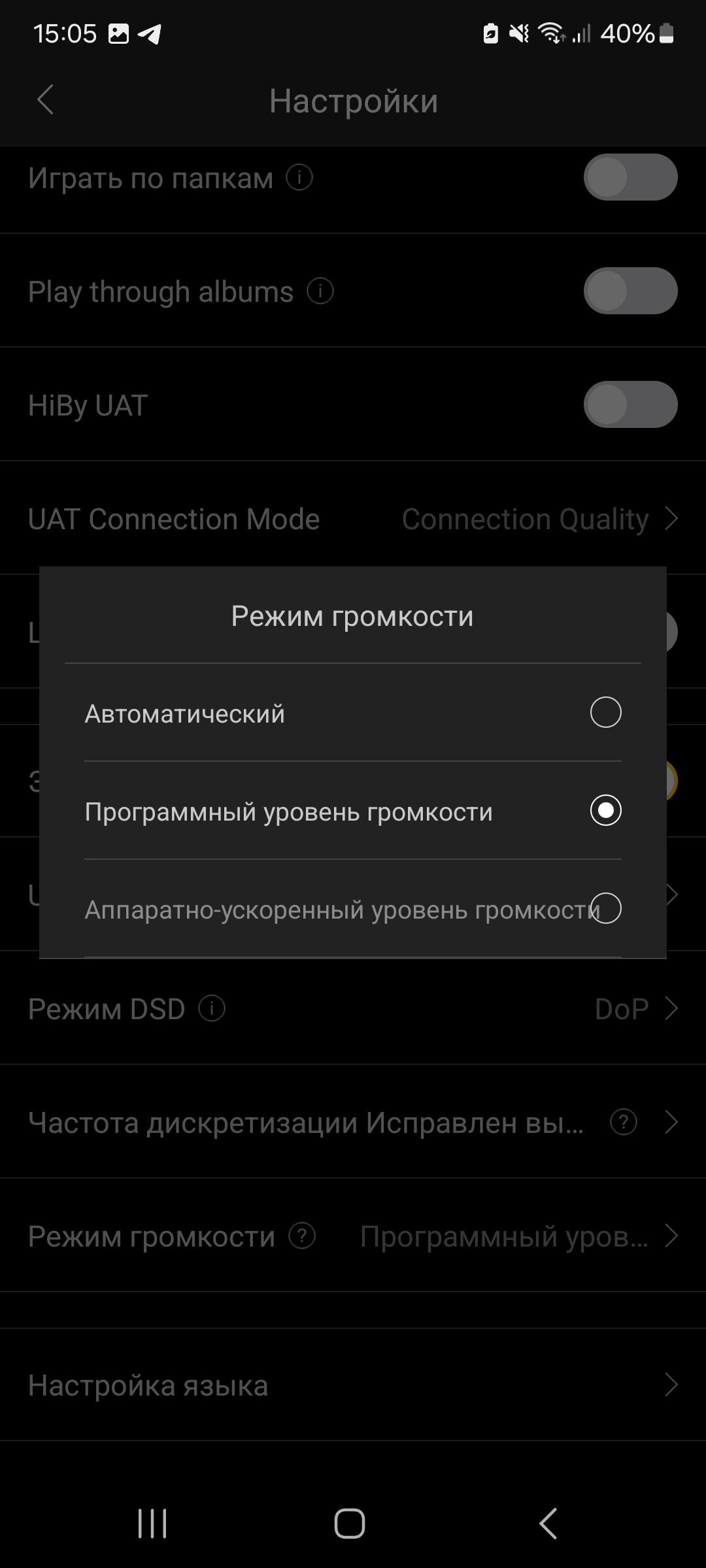 Если же нажать на многофункциональный регулятор, то нас перенесет в системное меню, где можно выбрать один из семи цифровых фильтров, подстроить джиттер, установить одну из версий UAC и отрегулировать яркость дисплея. Особой разницы между цифровыми фильтрами я в данной модели не заменил.