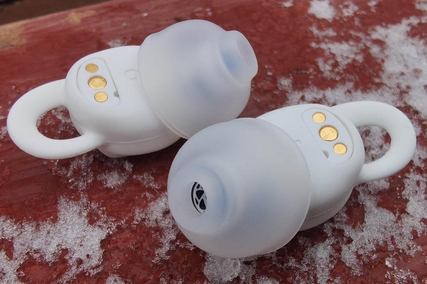 Внешние панели реагируют на двойное постукивание, поэтому срабатывают даже в перчатках, вот только на каждую можно «повесить» лишь одну функцию, причем для режима «Сон» доступны лишь пауза и переключение на «Музыку». Срабатывание сопровождается тоновым сигналом, а при смене режима выдается голосовая подсказка. Удержанием физической клавиши на кейсе можно принудительно перейти в режим сопряжения, а также сбросить настройки к заводским.