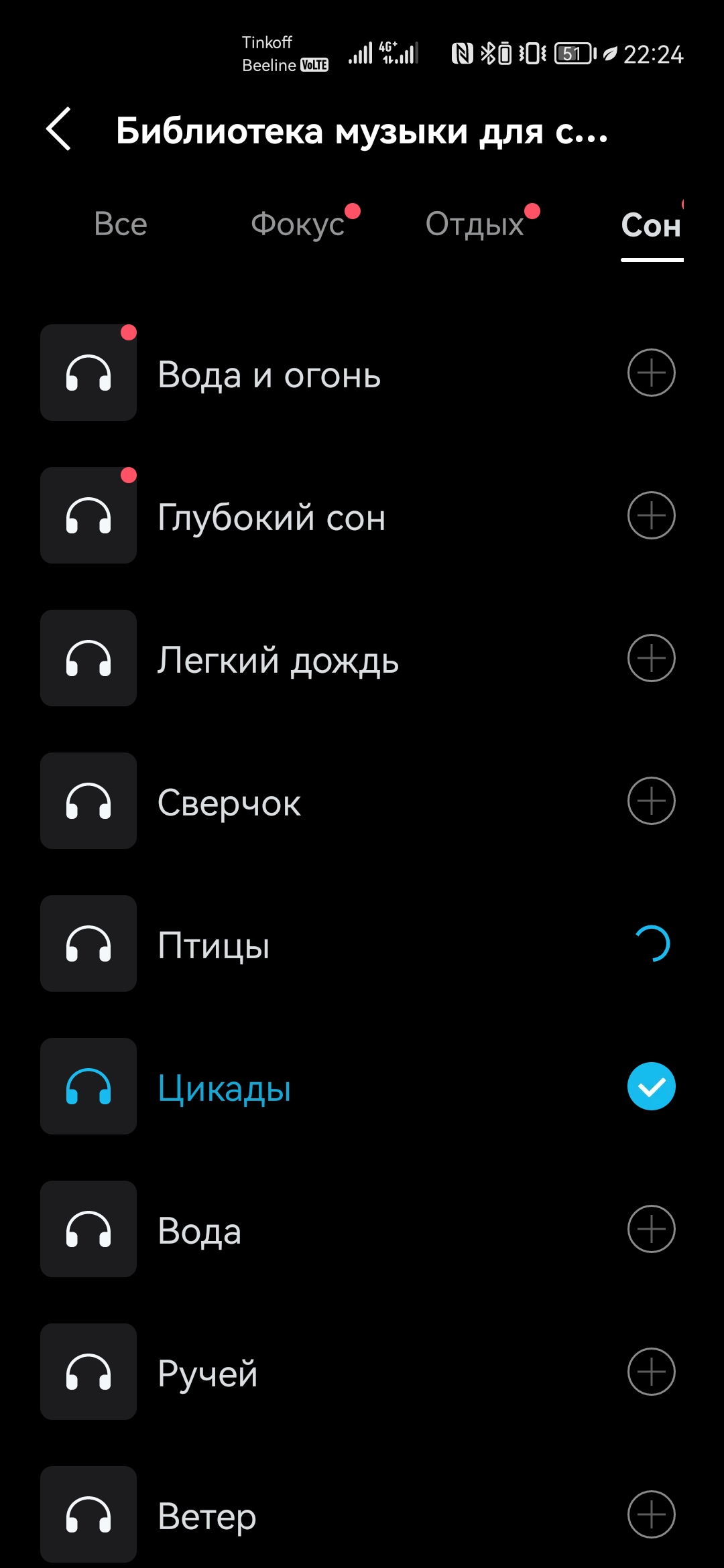 Пользователь может переключаться между режимами. При выборе «Музыки» появляется доступ к 8-полосному эквалайзеру со множеством пресетов, но вот подстраиваться под слух владельца как другие модели Soundcore, Sleep A10 не умеют. Ниже можно переназначить управление, выбрав функции как для парного использования, так и монофонического варианта. Также доступна библиотека различных звуков для расслабления и фокусировки внимания, которые можно прослушать с телефона, либо загрузить в память наушников для автономного воспроизведения.