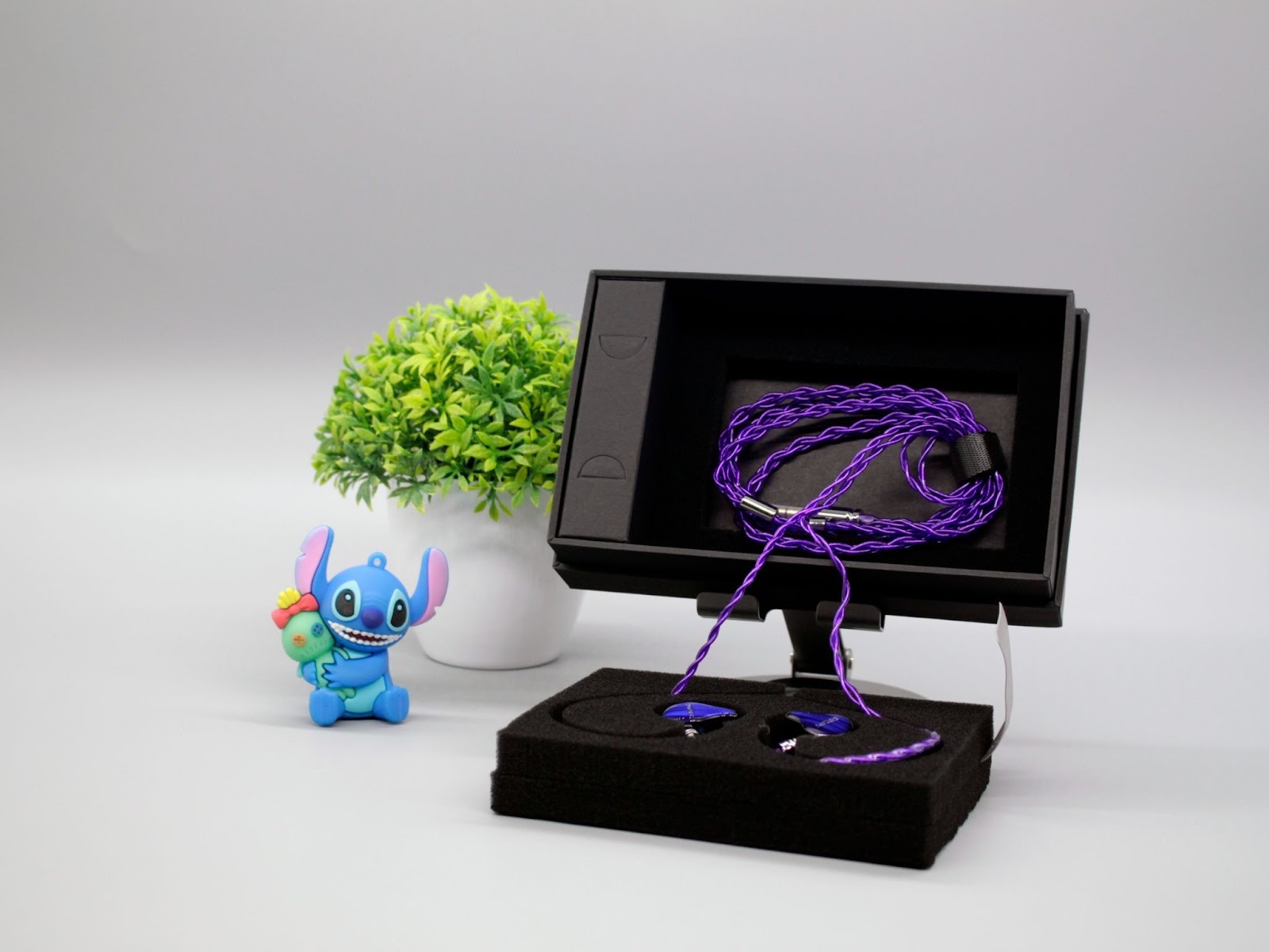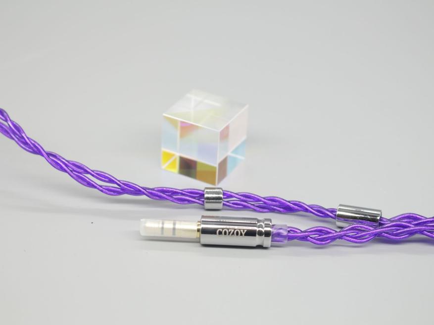 Кабель ярко фиолетового цвета с плетением. Для подключения используется 3.5 mm джек с хромированным металлическим корпусом с гравировкой бренда. Поводок с ограничителем продолжают стиль. К моему удивлению, регулировка удобная, а кабель очень мягкий и не имеет звукопроводящего эффекта, которым могут страдать некоторые наушники.