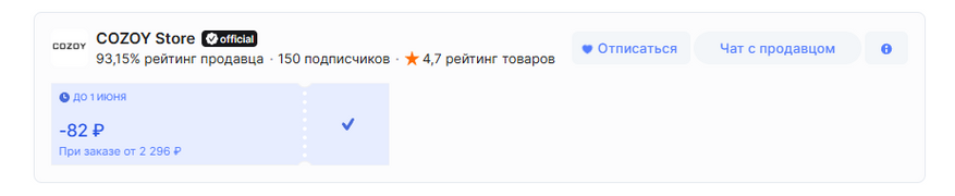 На странице продавца есть купон на скидку.