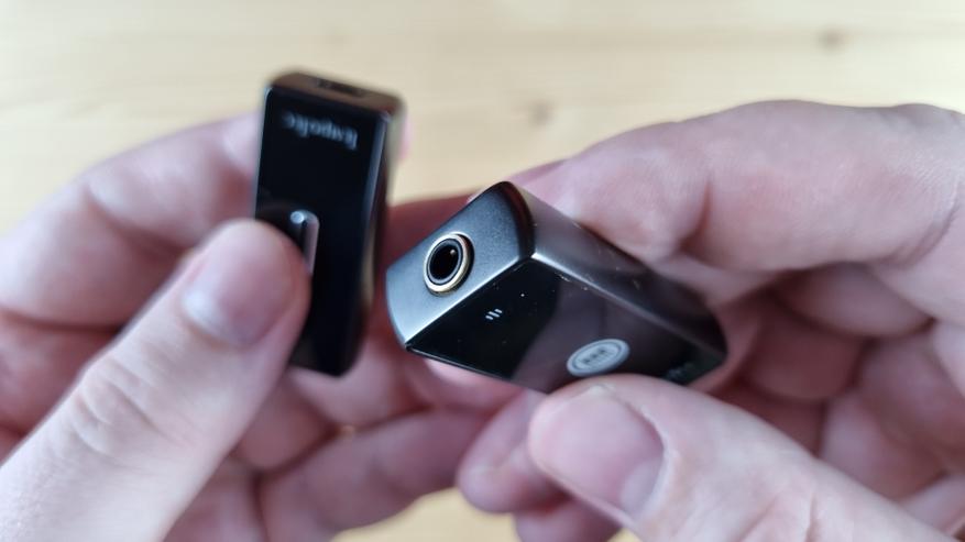 А так, мы по прежнему имеем тяжеленький, выполненный на металлическом каркасе, мобильный ЦАП с MicroUSB входом с одной стороны и 3.5 мм выходом — с другой.