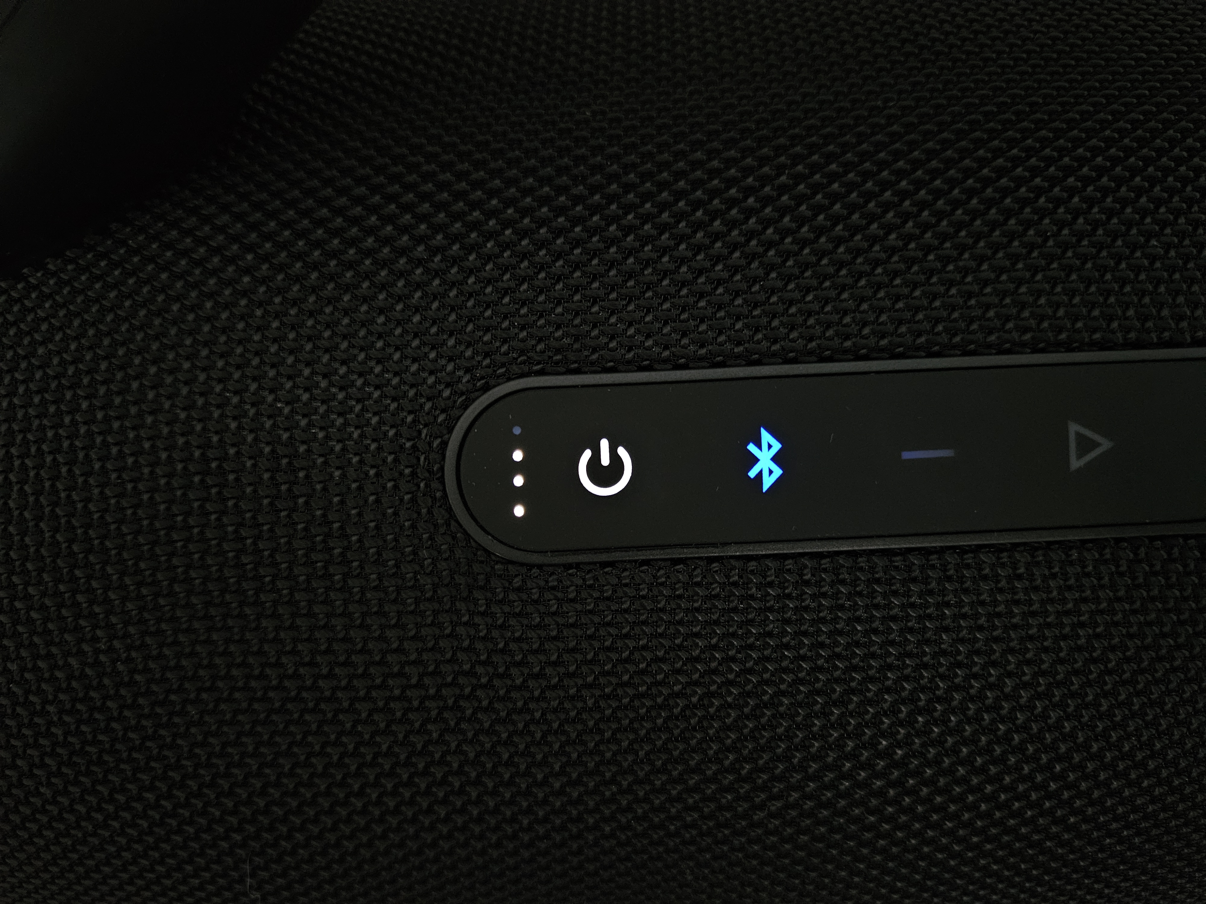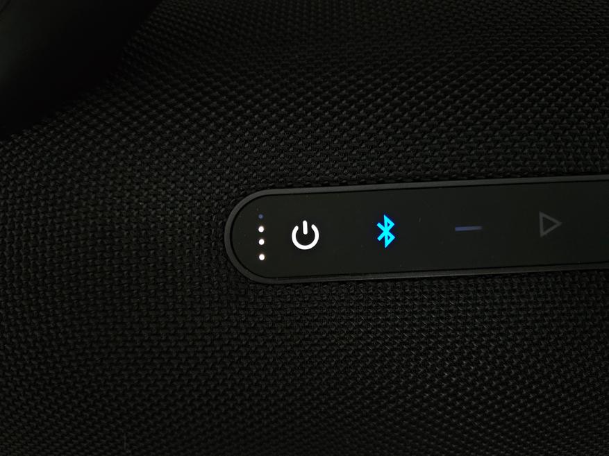 Управление простое и удобное: на верхней панели расположены кнопки питания, регулировки громкости, переключения треков, а также отдельные клавиши для активации SoundPulse, эхо-эффекта (для караоке) и функции TuneConn, позволяющей объединять две колонки в стереопару. Отдельно хочу подчеркнуть подсветку кнопок. Сделана она очень аккуратно и не аляписто.