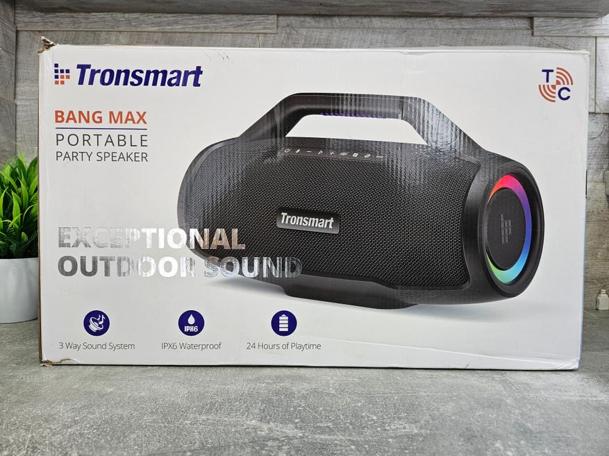 Tronsmart Bang Max — это одна из самых крупных и продвинутых портативных колонок бренда в формате бумбокса. В ней собрано всё лучшее, что может предложить производитель: максимальная громкость, богатый функционал и высокая мощность. Суммарная мощность шести динамиков по заявлению производителя (трёхполосная система) достигает 130 Вт и должна обеспечивать чистый и насыщенный звук. Это и предстоит проверить в этом обзоре.