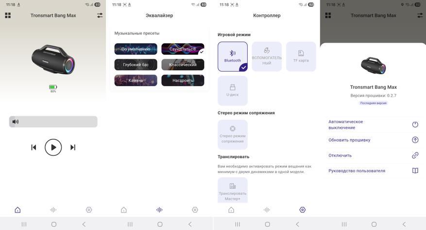 Приложение простое и без лишних меню — только самое необходимое для комфортного использования колонки.