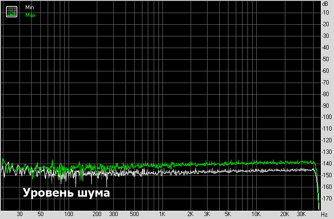АЧХ здесь просто прекрасная, шумовая полка составляет минус 140 Дб, хороший динамический диапазон, а гармонические и интермодуляционные искажения ниже уровня минус 110 Дб.