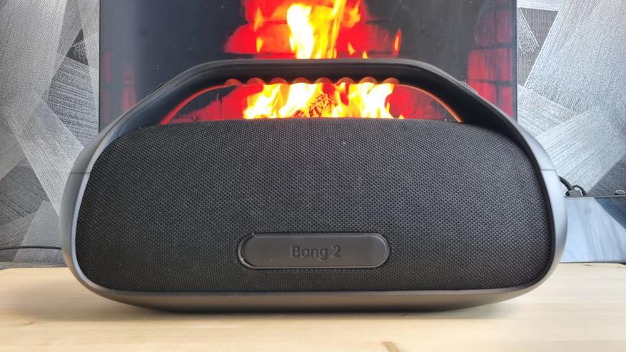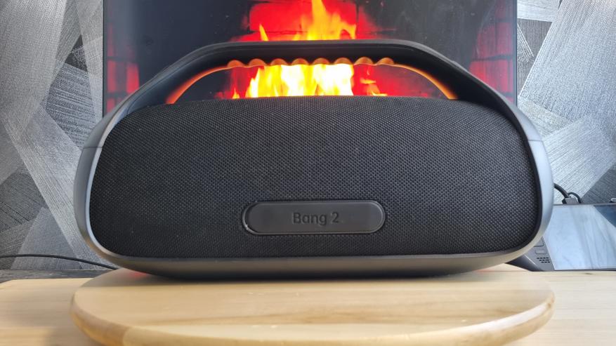Сам новый Bang вот ровно такой, чтобы брать его с собой куда-то в гости, деревню или на природу — не слишком крупный, но и не карманный вариант. Сверху красуется ручка с рельефным сцеплением, снизу — резиновые ножки, а по торцам — два пассивных динамика со светодиодной лентой. Они, собственно, и отвечают тут за светомузыку.