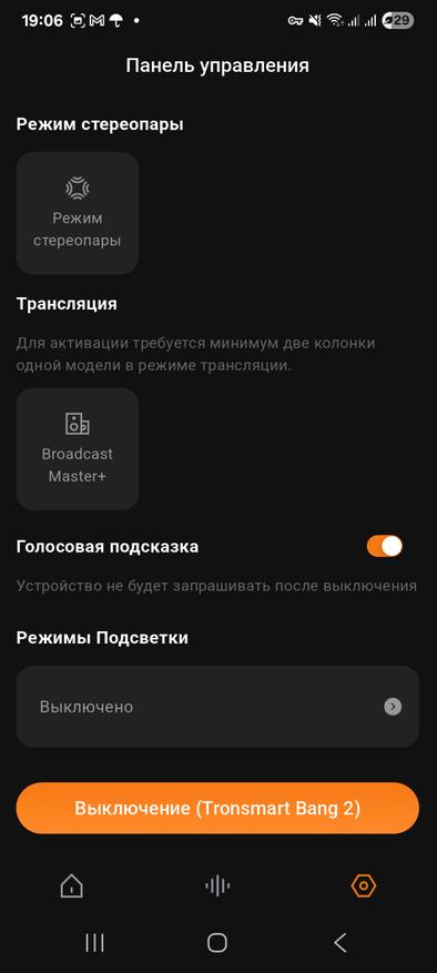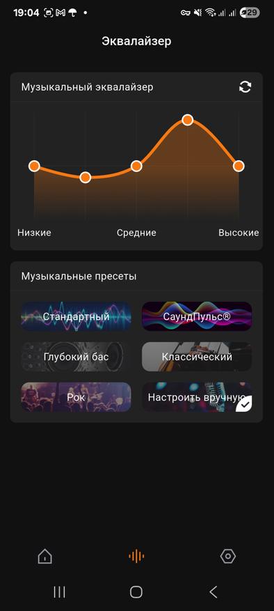 В фирменном приложении, естественно, вы можете обновить прошивку, выбрать или настроить пресет эквалайзера, время автоотключения, пощелкать режимы, а также управлять подсветкой или отключить её для экономии заряда.