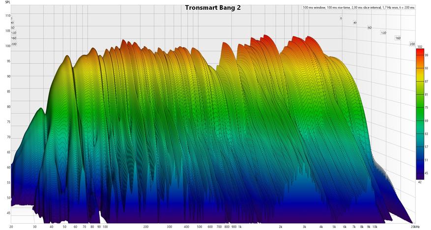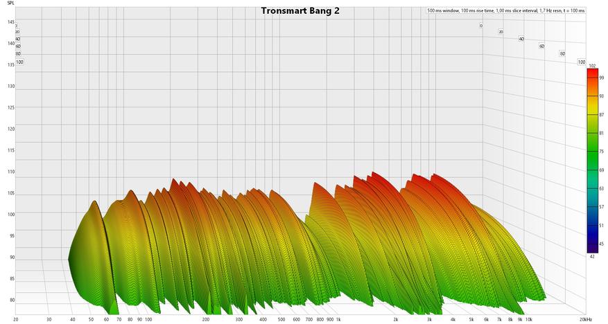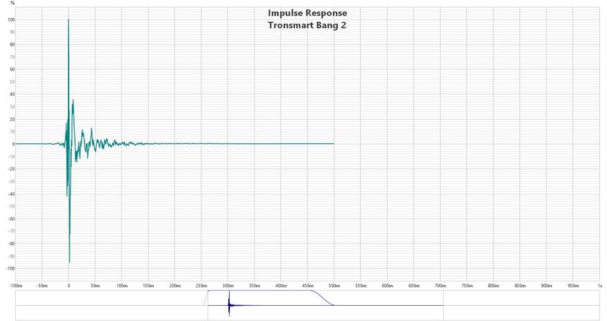 По измерениям у Bang весьма неплохой по всем характеристикам импульс, допустимые расхождения между каналами и искажения, в пике достигающие примерно 1%. Что, как для блютуз колонки, ну просто гениально.