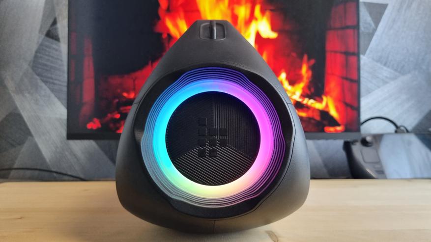 Внутри, как я уже сказал, установлено целых 5 излучателей. Вуффера, к сожалению, нет, зато есть внушительный среднечастотник, два пассивных драйвера и два твитера. Общая мощность всего этого составляет 90 Вт. Что, благодаря аккумулятору на 18000 мАч, дает аж 26 часов автономной работы. Это, конечно, без учета подсветки и на половине громкости.