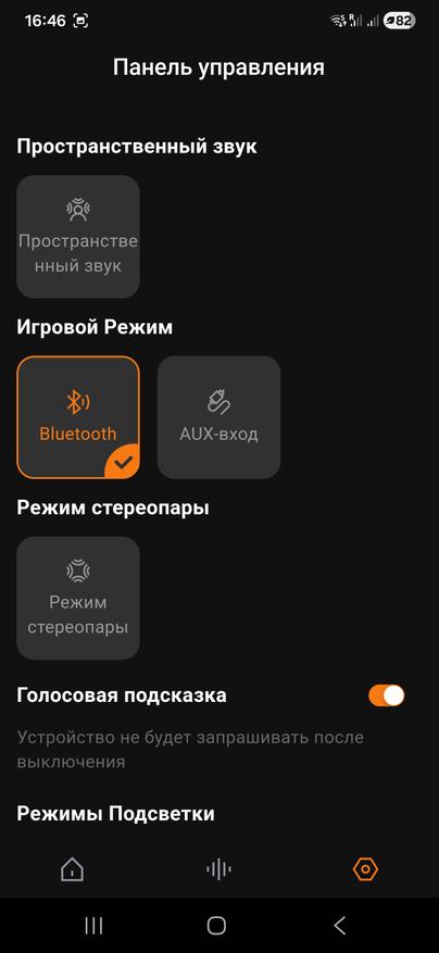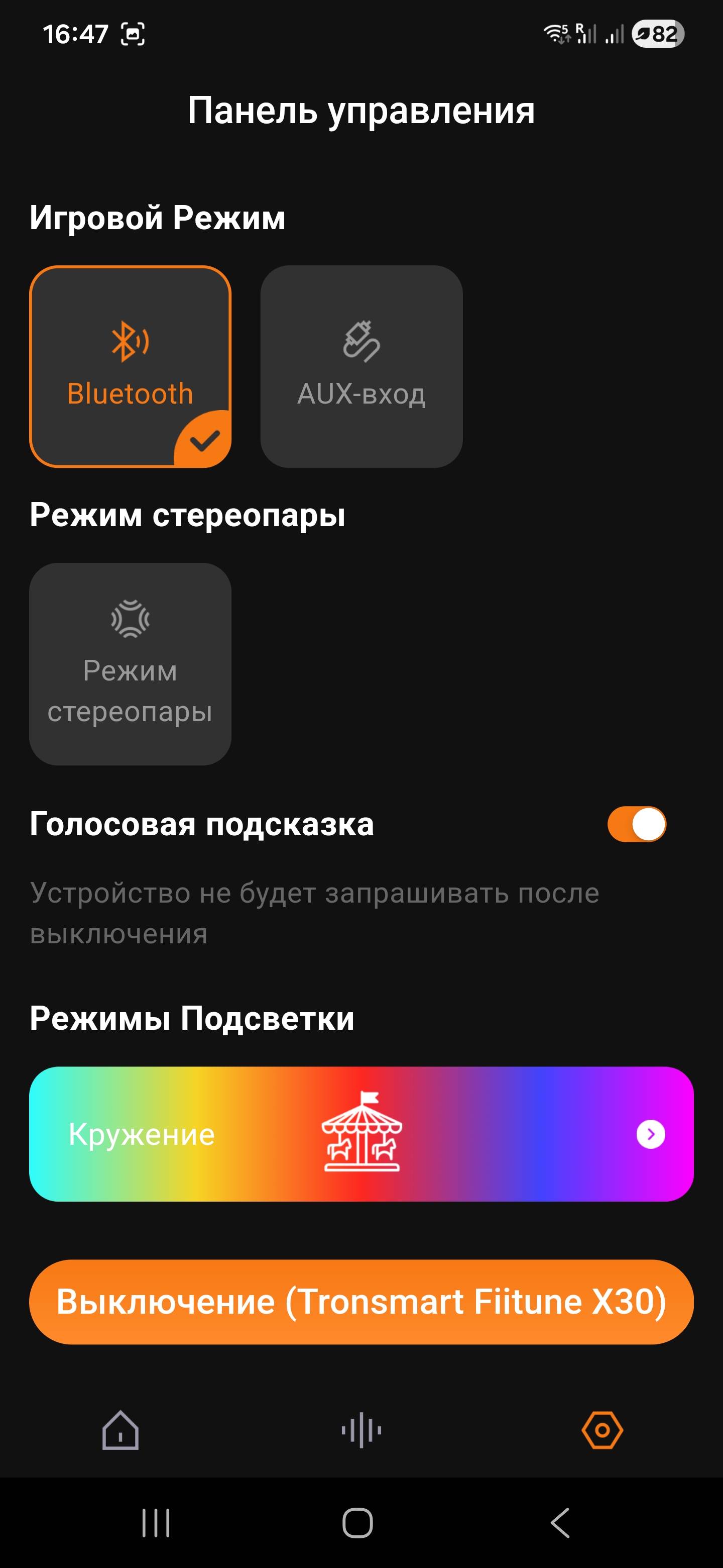 Теперь что касается подключения. Сопряжение по Bluetooth проходит без задержек, колонка определяется смартфоном практически сразу. В настройках отображается поддержка LDAC, при необходимости можно переключиться на стандартный SBC. В пределах квартиры сигнал оставался стабильным, без обрывов, а на расстоянии около 15 метров на открытом воздухе соединение сохранялось без проблем. Подключение по кабелю через Aux также работает корректно. Управление через приложение Tronsmart дает возможность переключать источники, обновлять прошивку, настраивать эквалайзер и управлять подсветкой, а также активировать TWS-пару и режим пространственного звука.