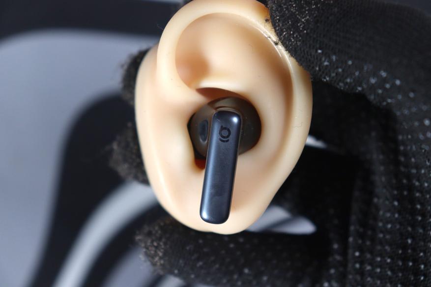 Наушник полностью входит в раковину уха, ножка не торчит перпендикулярно голове. Для длительного ношения форма кажется действительно продуманной.