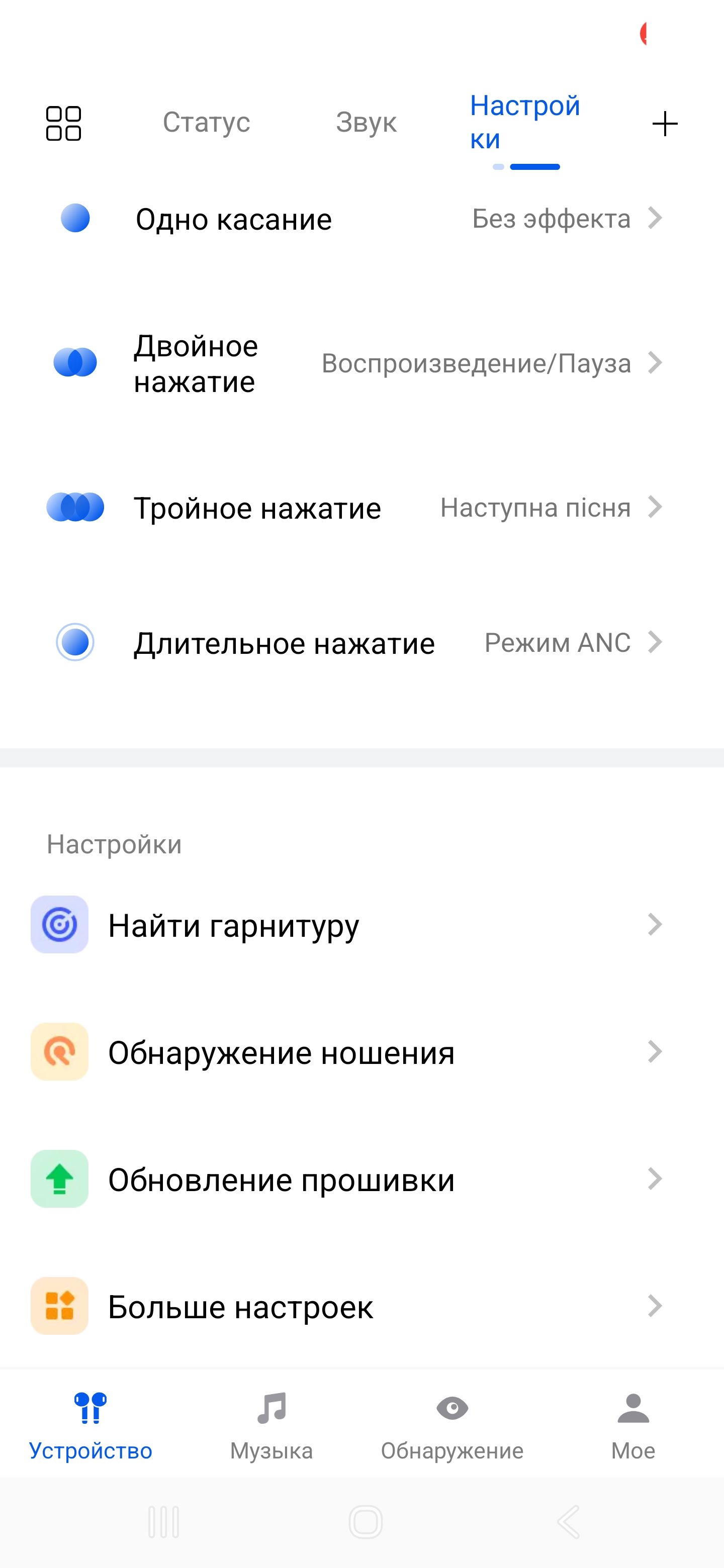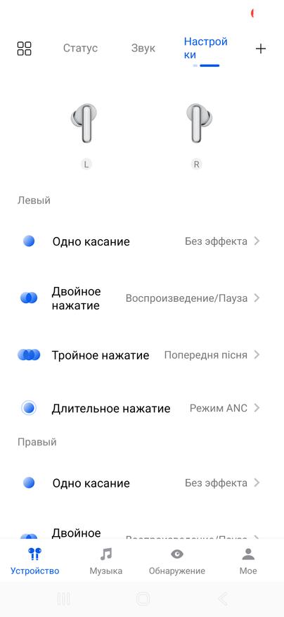 Управление сенсорное. По умолчанию набор действий ограничен, но в приложении Haylou Sound можно переназначить жесты, включая регулировку громкости. Там же доступны настройки ANC, активация LDAC, игровой режим с пониженной задержкой, эквалайзер и обновление прошивки.