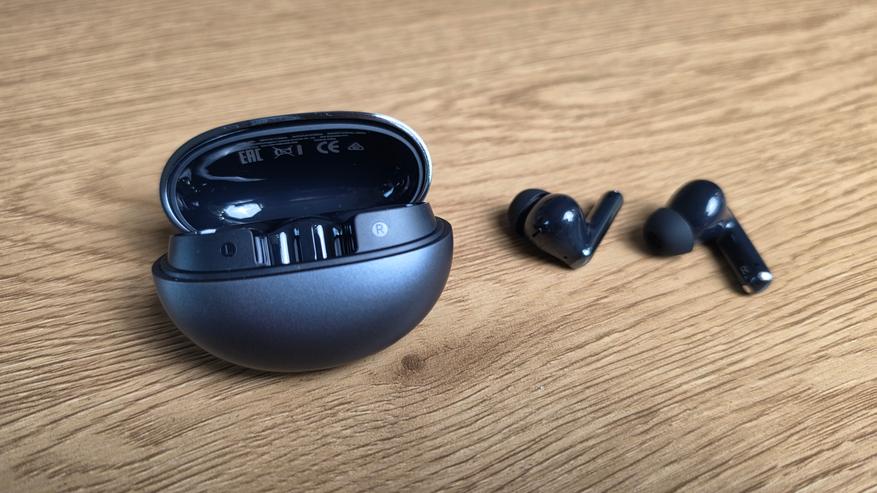 Внутри установлен аккумулятор на 60 мАч в каждом наушнике и 475 мАч в кейсе. По заявленным данным, до 12 часов без ANC и около 10 часов с активным шумоподавлением. С учетом кейса — до 40 часов. Быстрая зарядка есть: примерно 10 минут дают около полутора часов воспроизведения.
