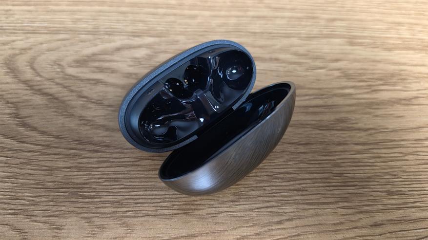 Крышка открывается широко, доступ к наушникам нормальный, сами они утоплены глубоко. Магниты держат хорошо, люфта нет. При этом доставать их не так удобно, как у моделей с более открытой посадкой — нужно подцеплять пальцами, просто сверху не вытащить.