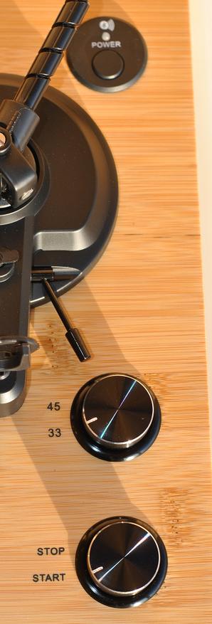 Управление моделью выполнено в виде двух рукояток — переключателей: один отвечает за начало вращения диска, второй за выбор скорости вращения (33,3 или 45 оборотов).