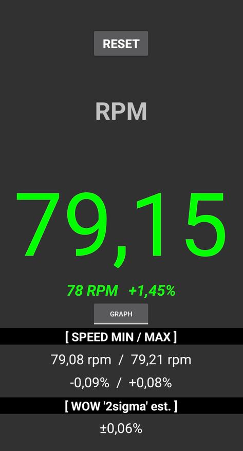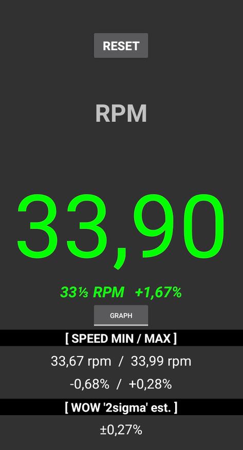 Проверим скорости вращения опорного диска на трех режимах скоростей (с помощью смартфона и мобильного ПО RPM Speed):