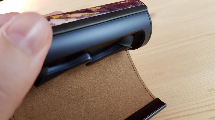 При этом, верхней крышки тут нет совсем, вместо нее идут сменные кожаные накладки на магнитах.